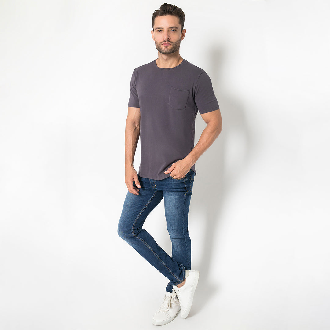 Kaos The One - Longline Spandex - Roundneck Kantong - Abu - FTS.622.M001.04.C-S/S - T-shirt Polos Basic