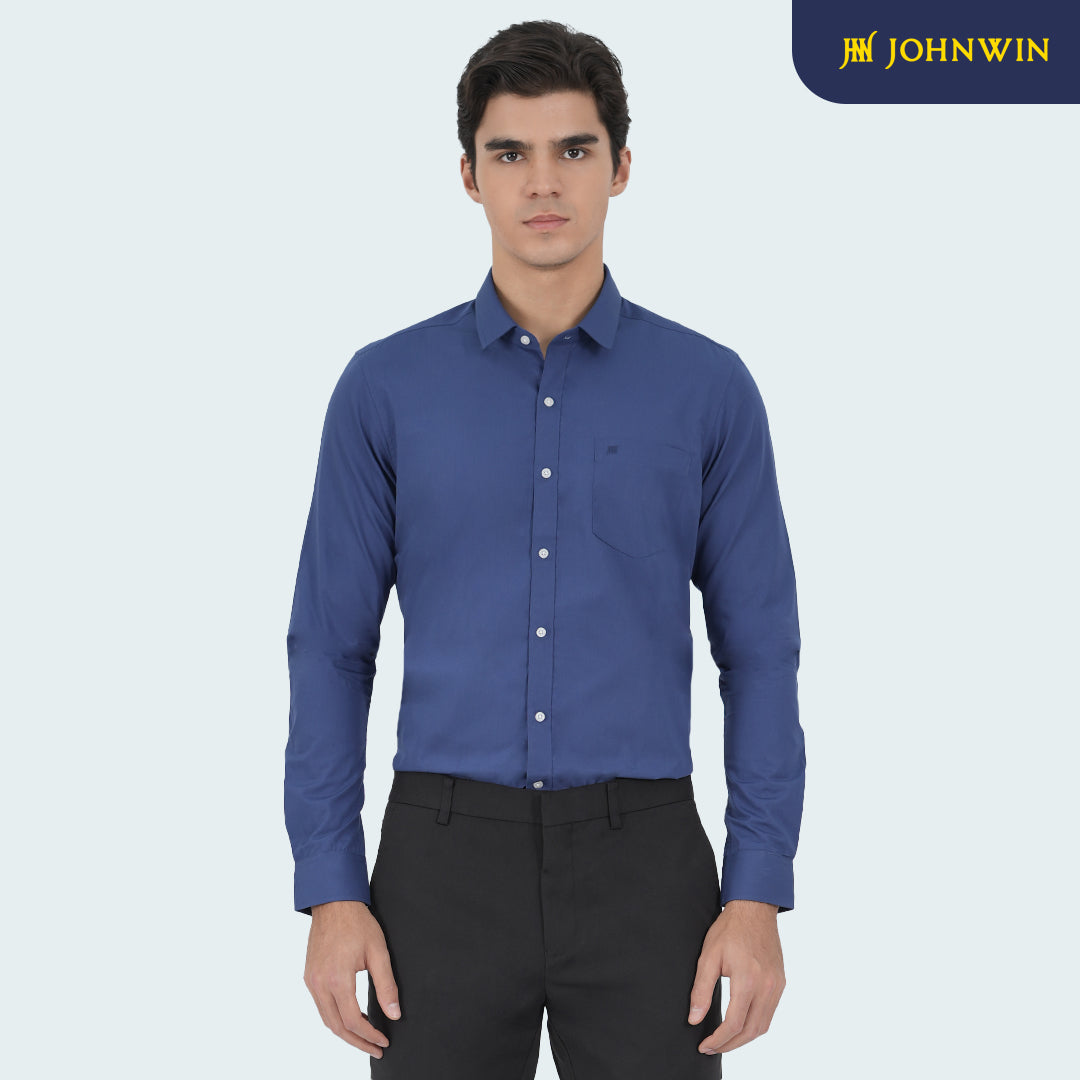 Kemeja Kerja Formal Pria - Slim Fit - Katun - Lengan Panjang - Biru/Navy - FSH.650.K395.1013.C-L/S