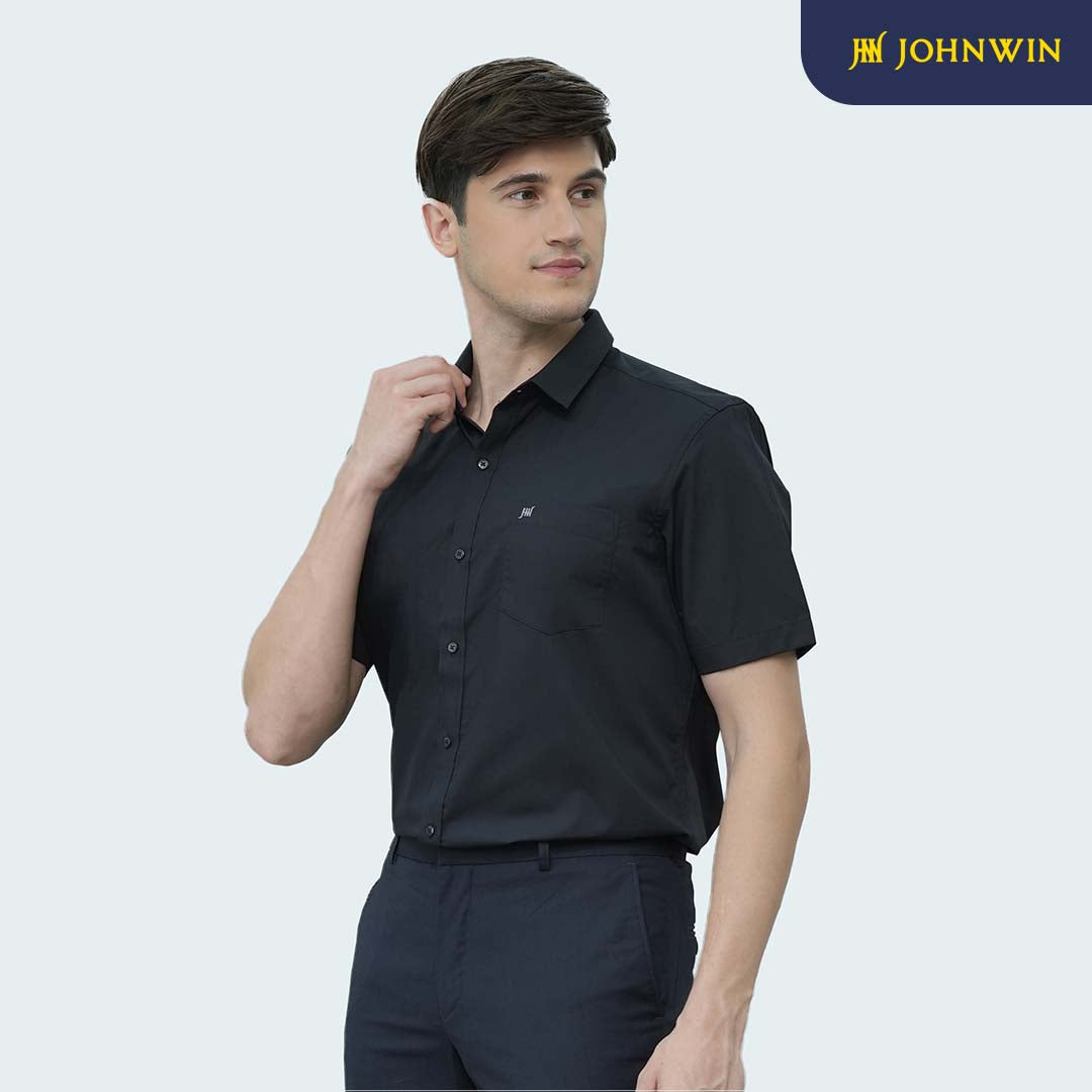 Kemeja Kerja Formal Pria - Slim Fit - Katun - Lengan Pendek - Hitam - FSH.650.K393.982.C-S/S