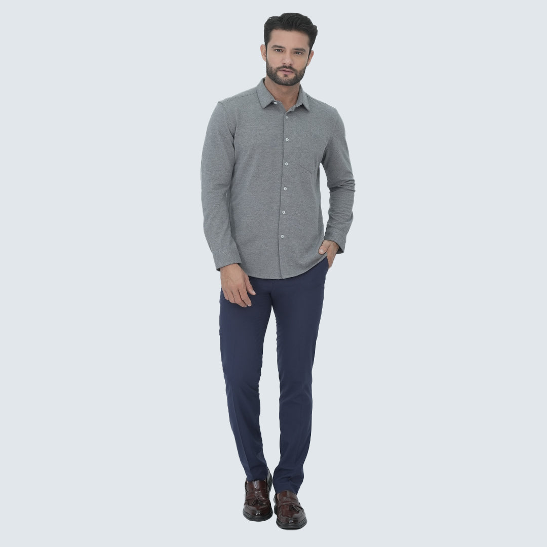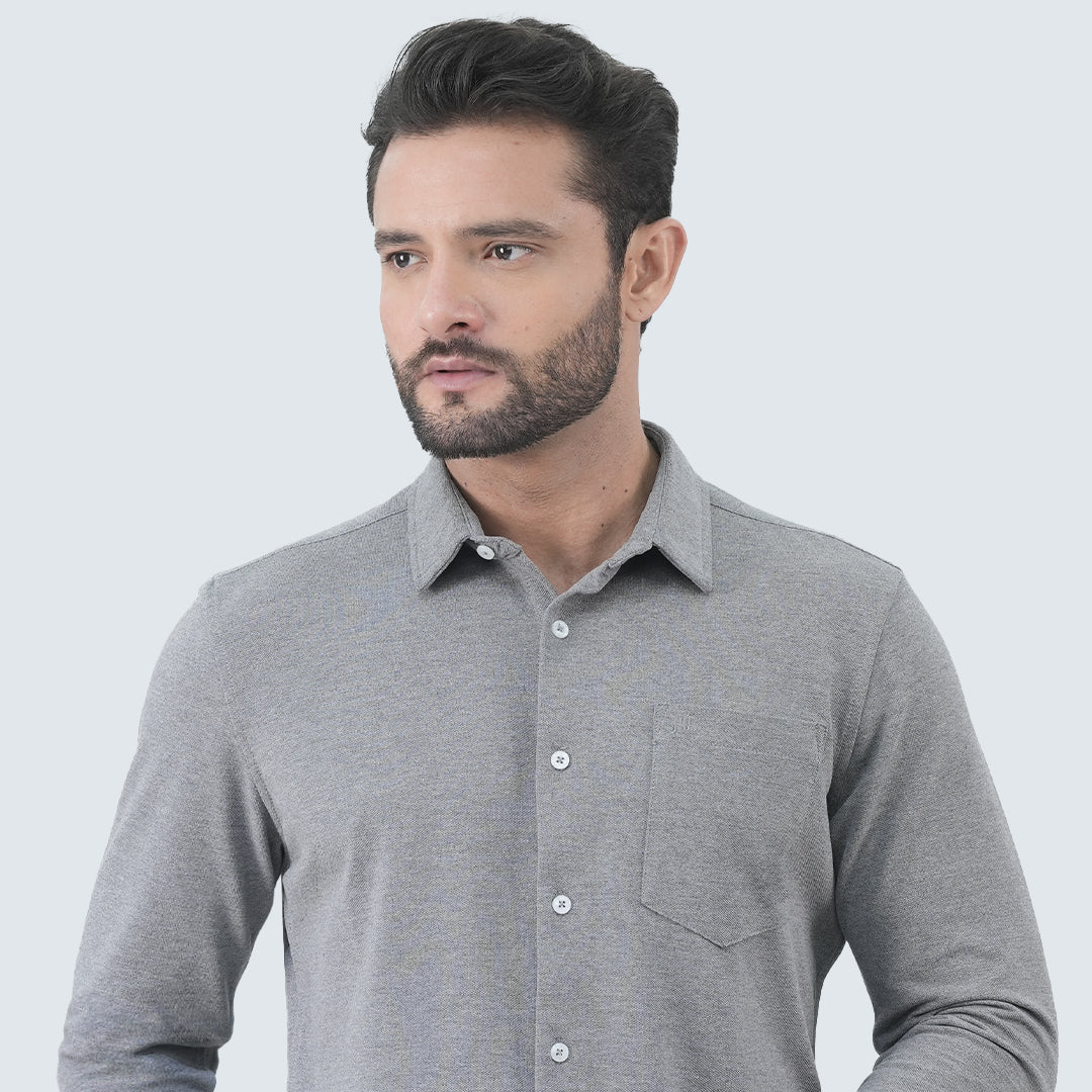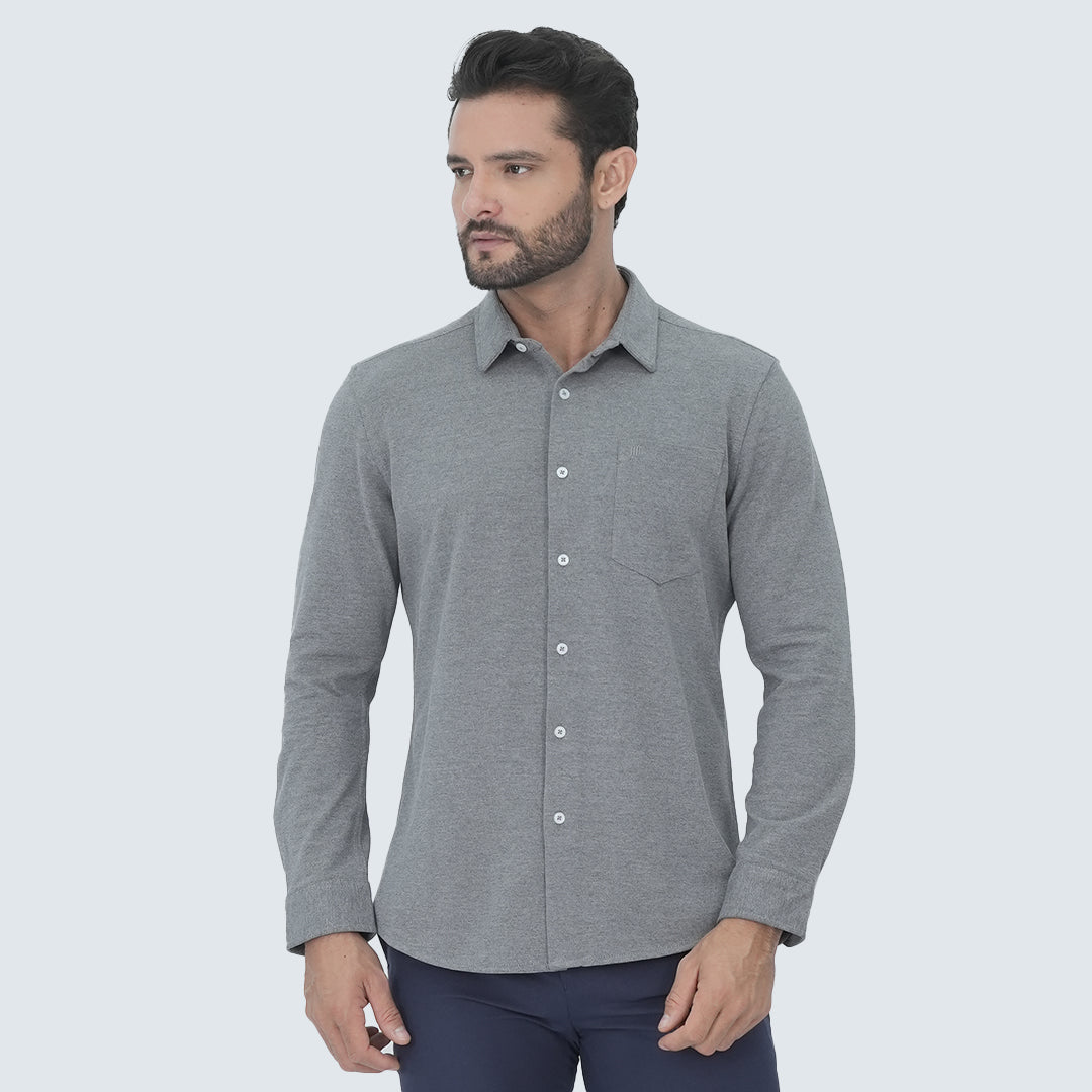 Kemeja Formal Milan - Kemeja Pria - Model Basic - Katun Knitting - Lengan Panjang - Slim Fit - Abu - FWS.639.S008.06.C-L/S