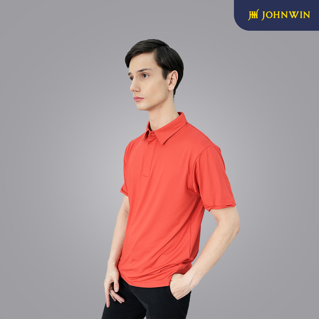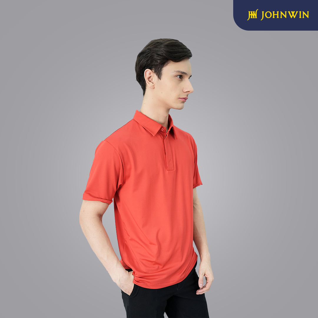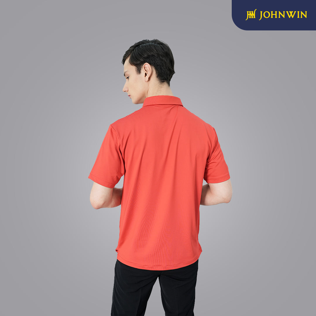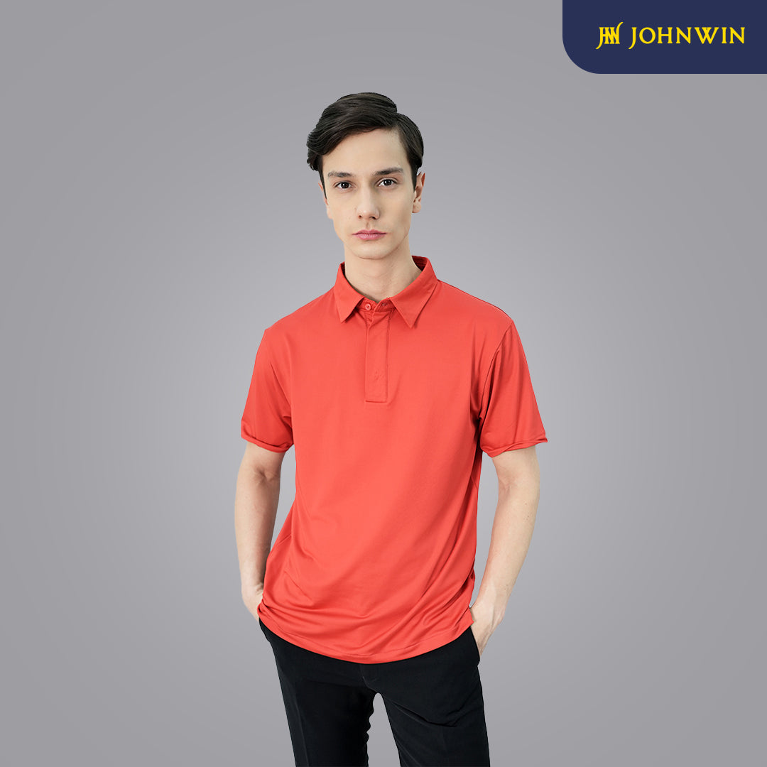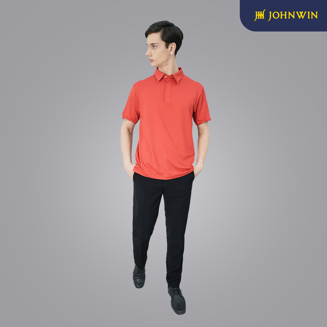Kaos Polo Casual dari Johnwin dengan warna dasar merah. Terbuat dari bahan spandex mikrofiber yow. Menggunakan fitting Slim Fit. Ref: FWS.638.C007.008.C-S/S