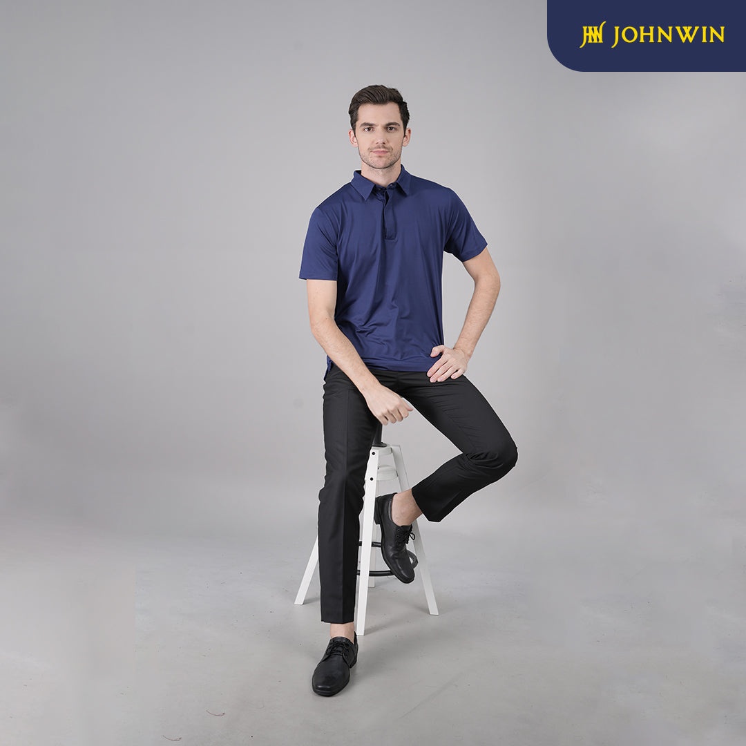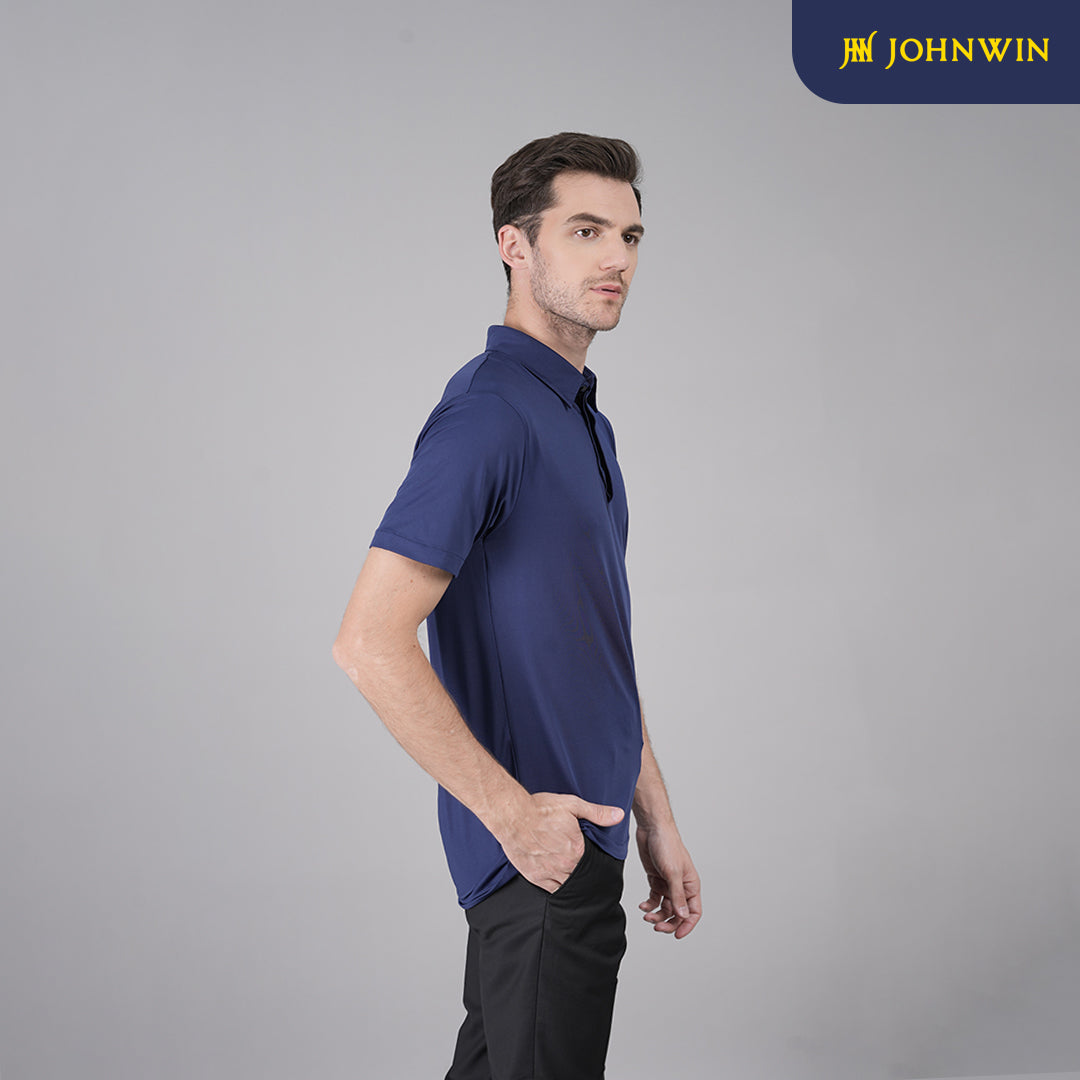 Kaos Polo Casual dari Johnwin dengan warna dasar Biru. Terbuat dari bahan spandex mikrofiber yow. Menggunakan fitting Slim Fit. Ref: FWS.638.C007.003.C-S/S