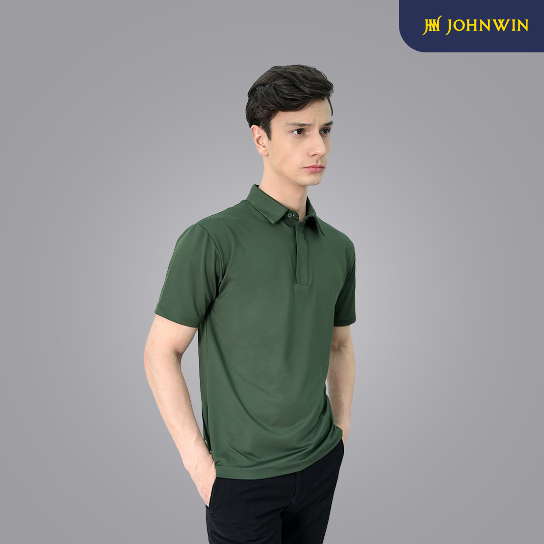 Kaos Polo Casual dari Johnwin dengan warna dasar hijau. Terbuat dari bahan spandex mikrofiber yow. Menggunakan fitting Slim Fit. Ref: FWS.638.C007.005.C-S/S