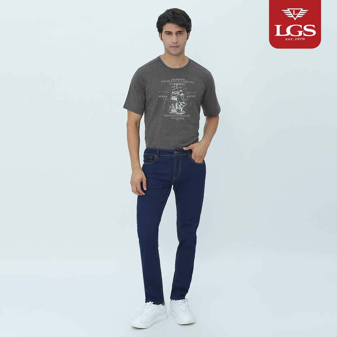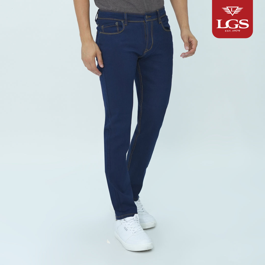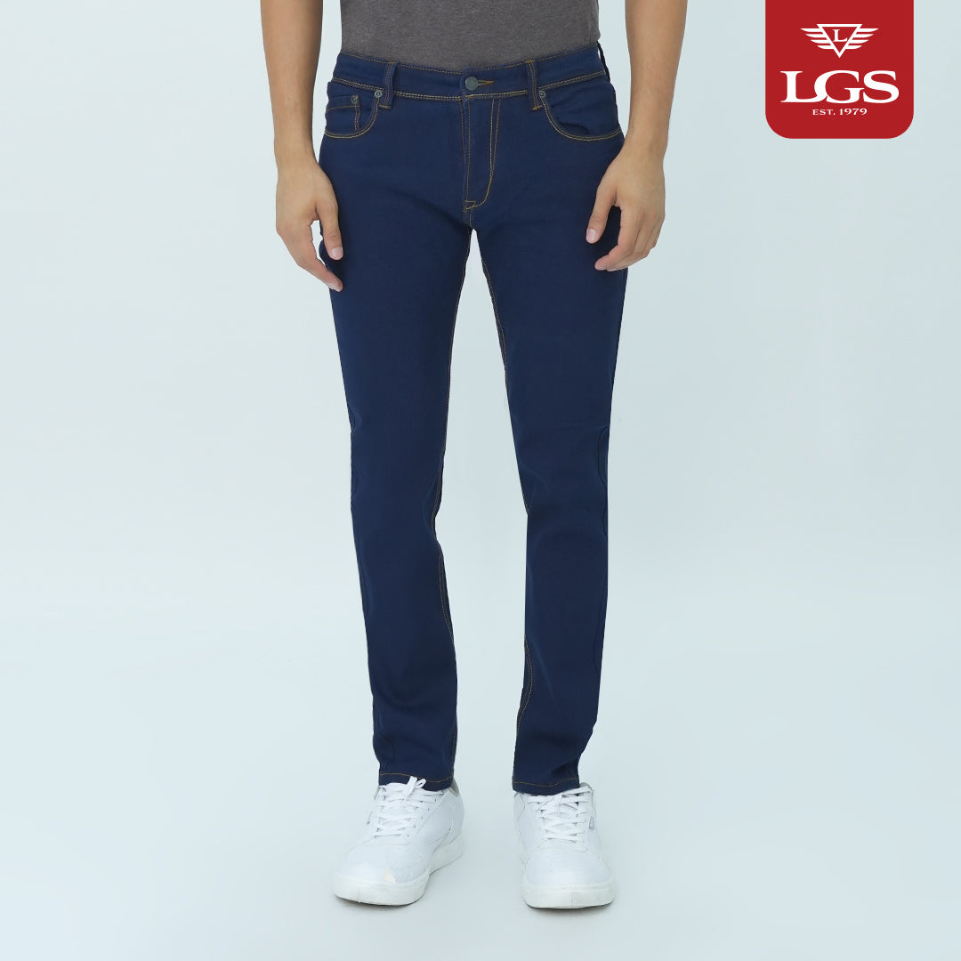 Celana jeans 5-pocket warna navy yang menghadirkan kenyamanan dan ketahanan dengan bahan jeans premium yang stretch.