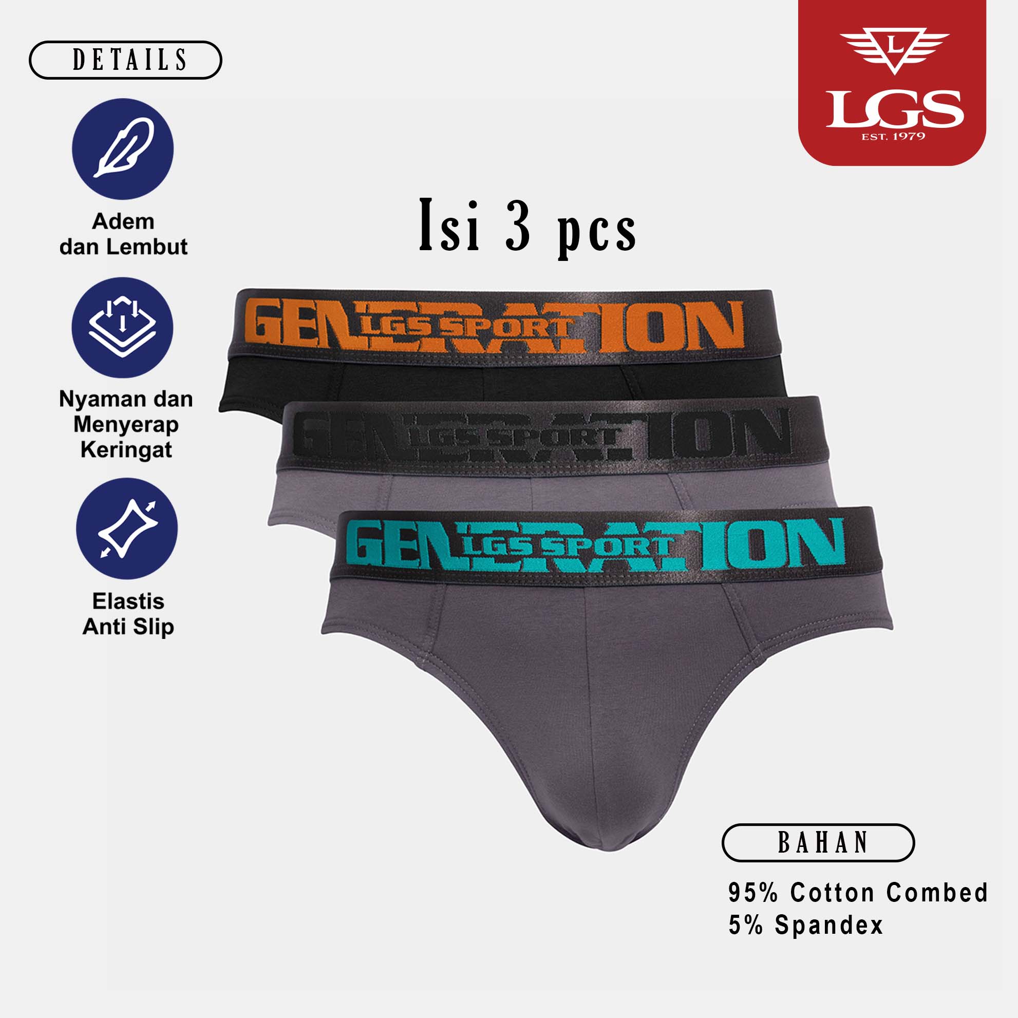 Underwear isi 3 Pcs dari LGS dengan warna Dark Grey, Light Grey dan Black. Terbuat dari bahan katun berkualitas. Ref: LEMN.002.883.3.7C