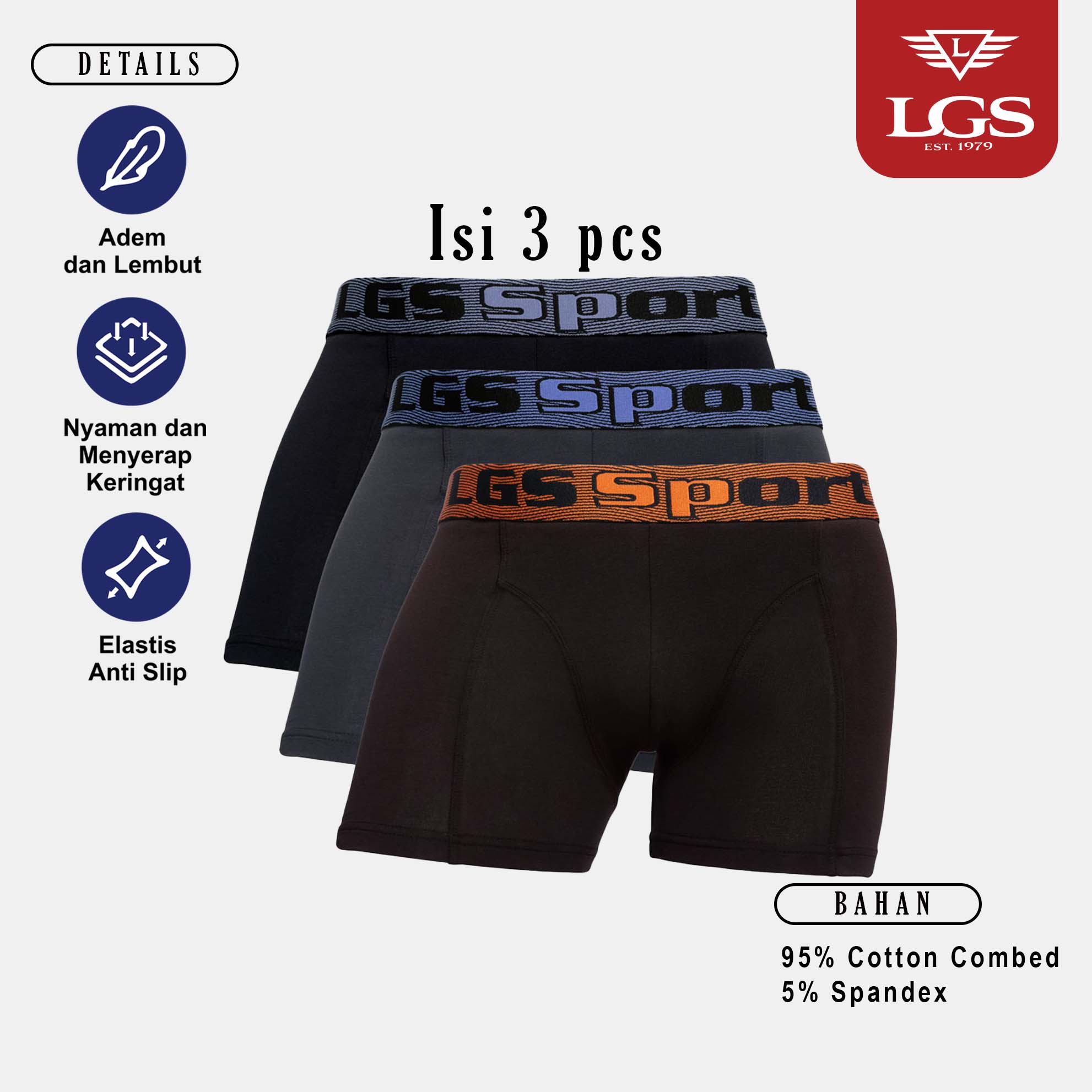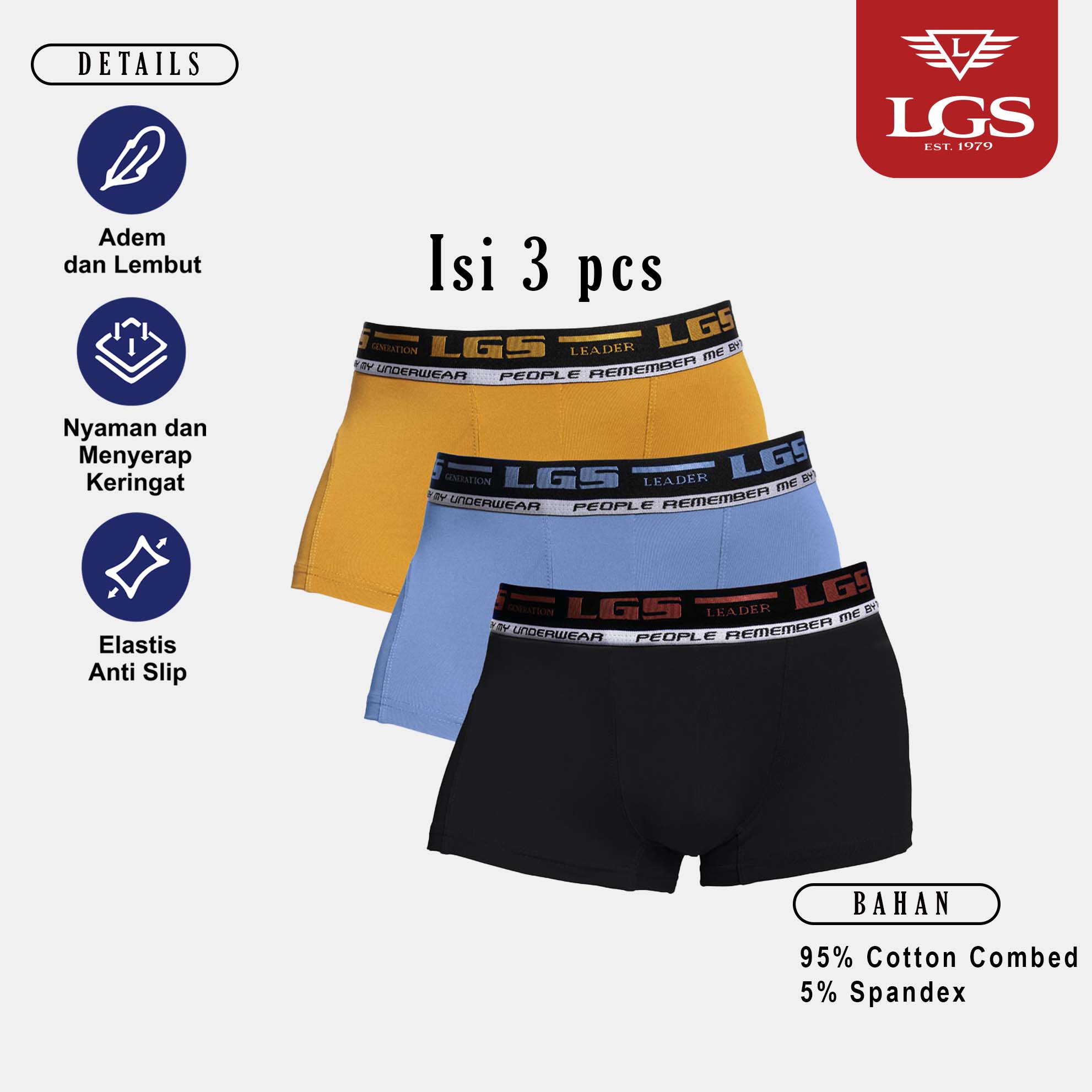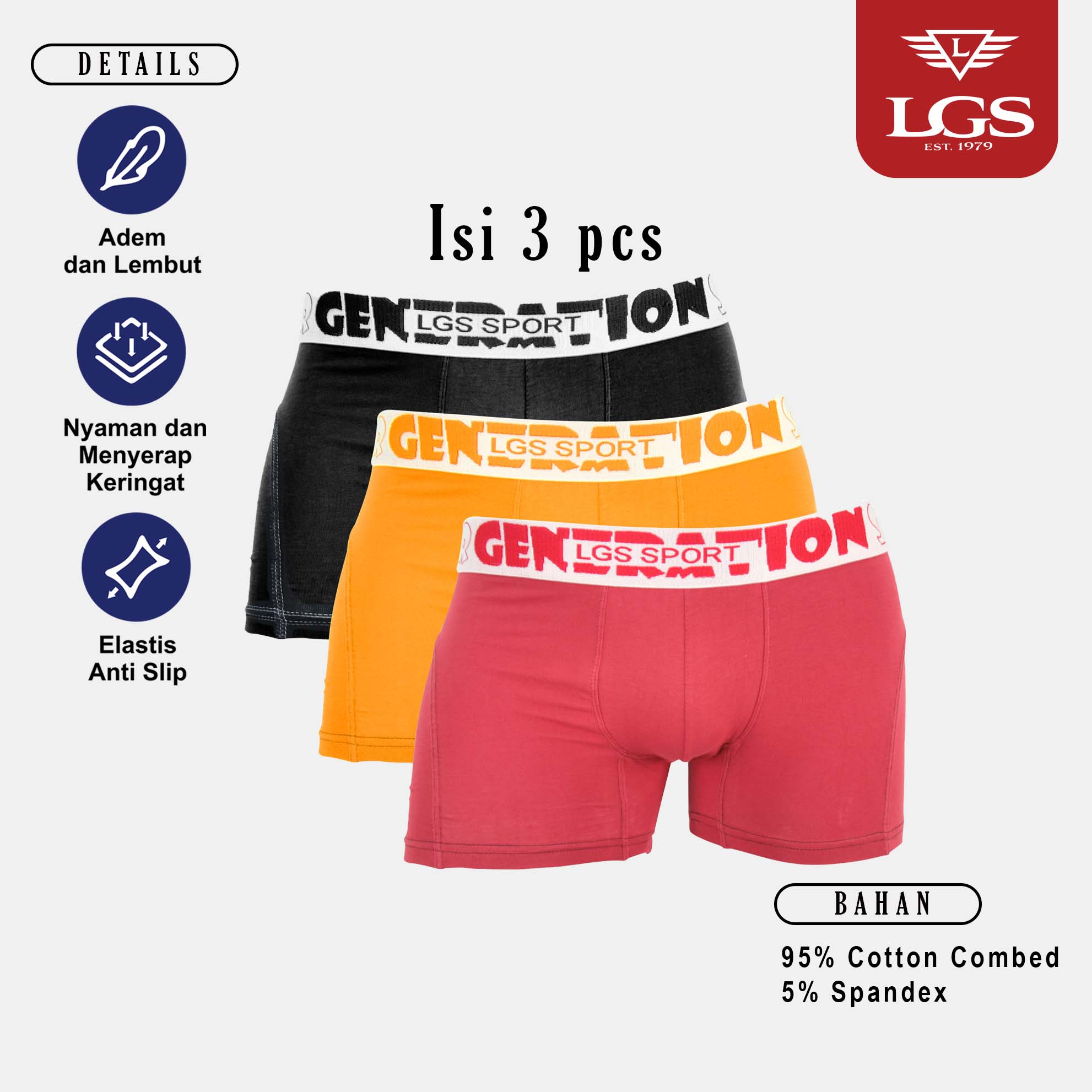 Underwear - Boxer - Pakaian Dalam - Cream/Red/Abu - 3 Pcs - LEBX.005.655.3.7C