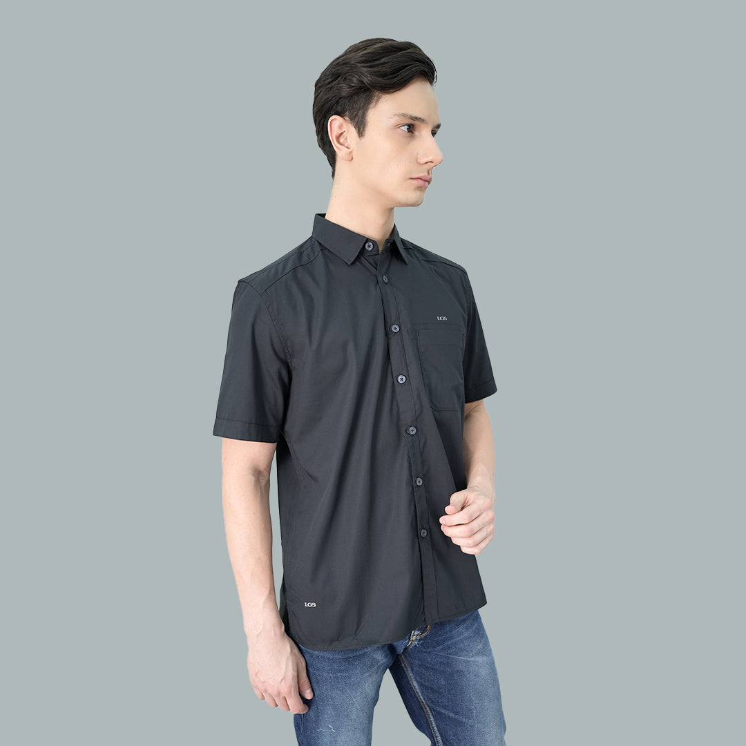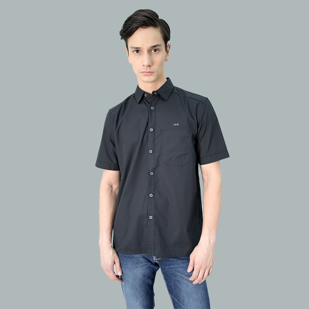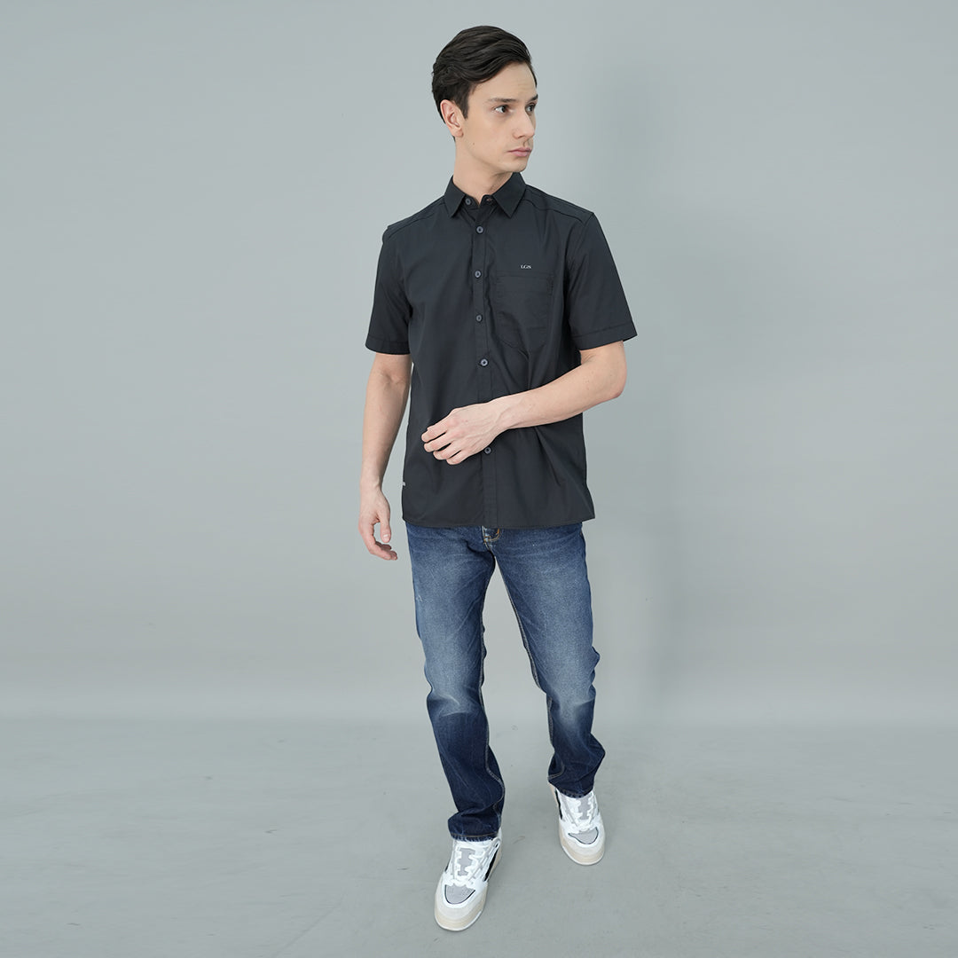 Kemeja Basic Polos Pria - Kemeja Lengan Pendek - Motif Polos - Hitam - Regular Fit - CSH.271.S2001.208.C