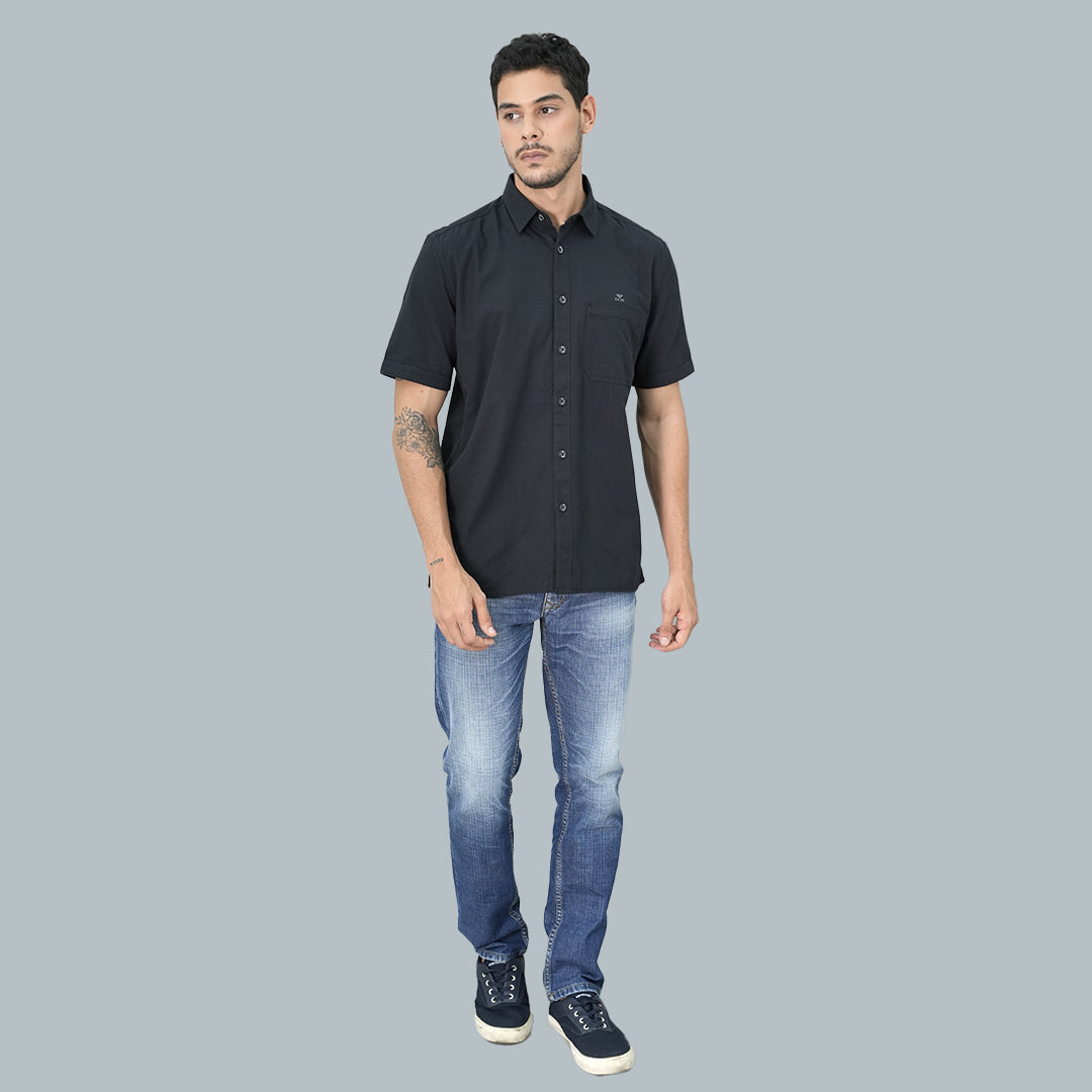 Kemeja Casual Pria Regular Fit - Katun - Lengan Pendek - Hitam - CSH.271.S1097.185.C