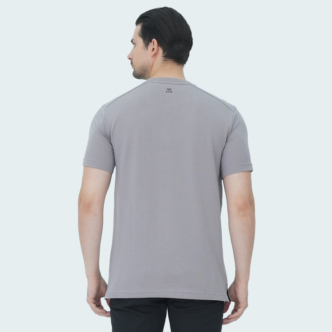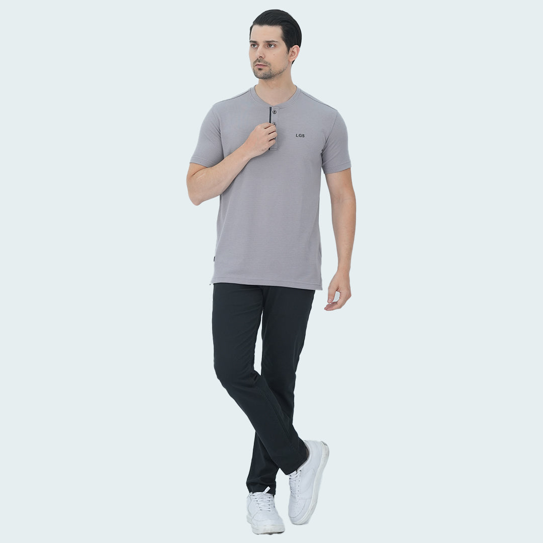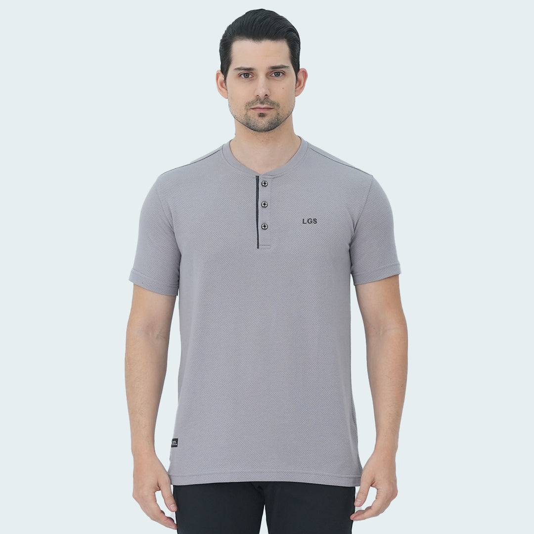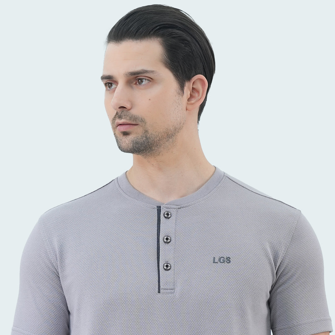 Kaos Pria - Lengan Pendek - Kancing Dada - Motif Polos - Kerah Henley - Katun Premium - Bertekstur Popcorn - Abu Muda - JPS.321.C3229F.01.C