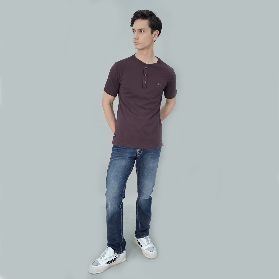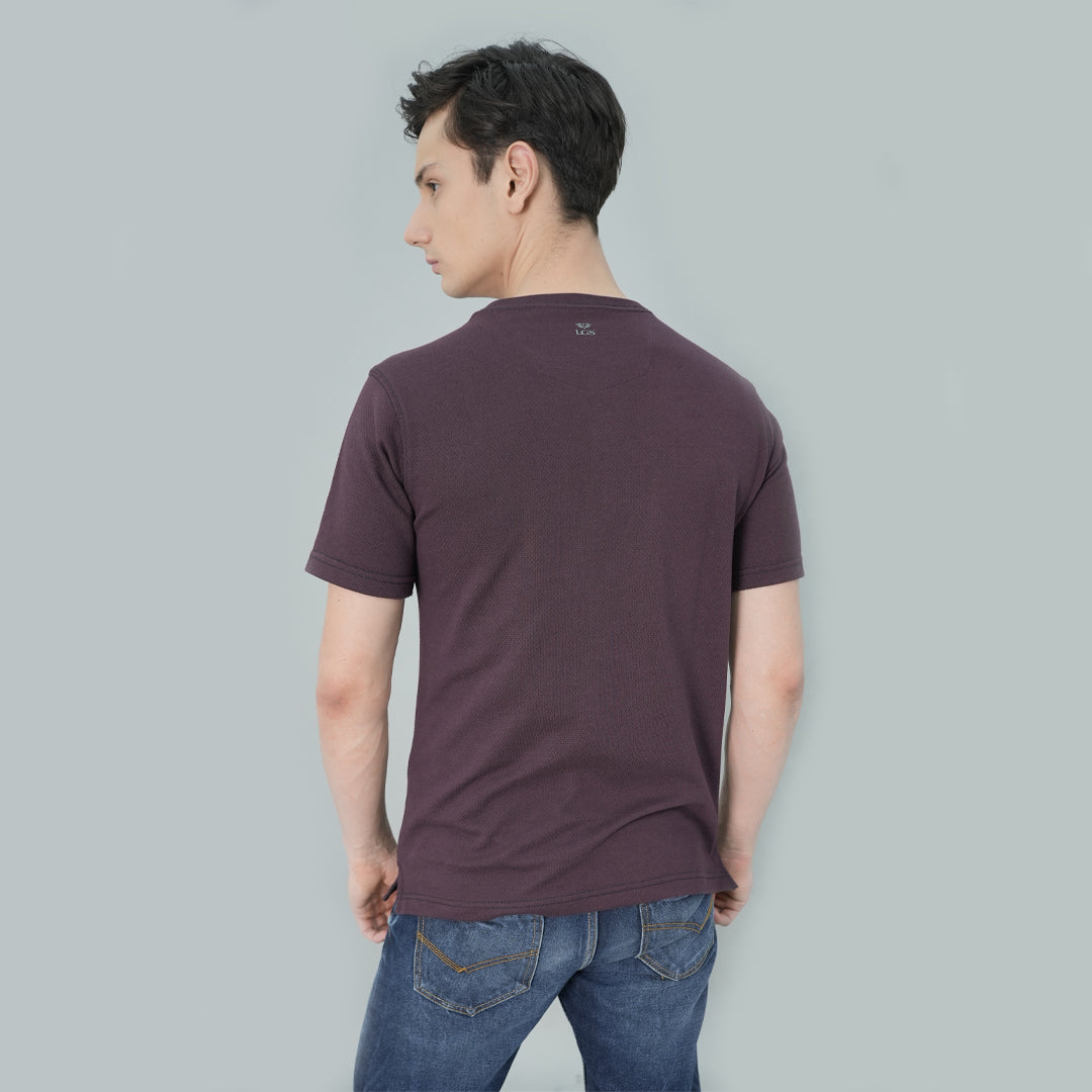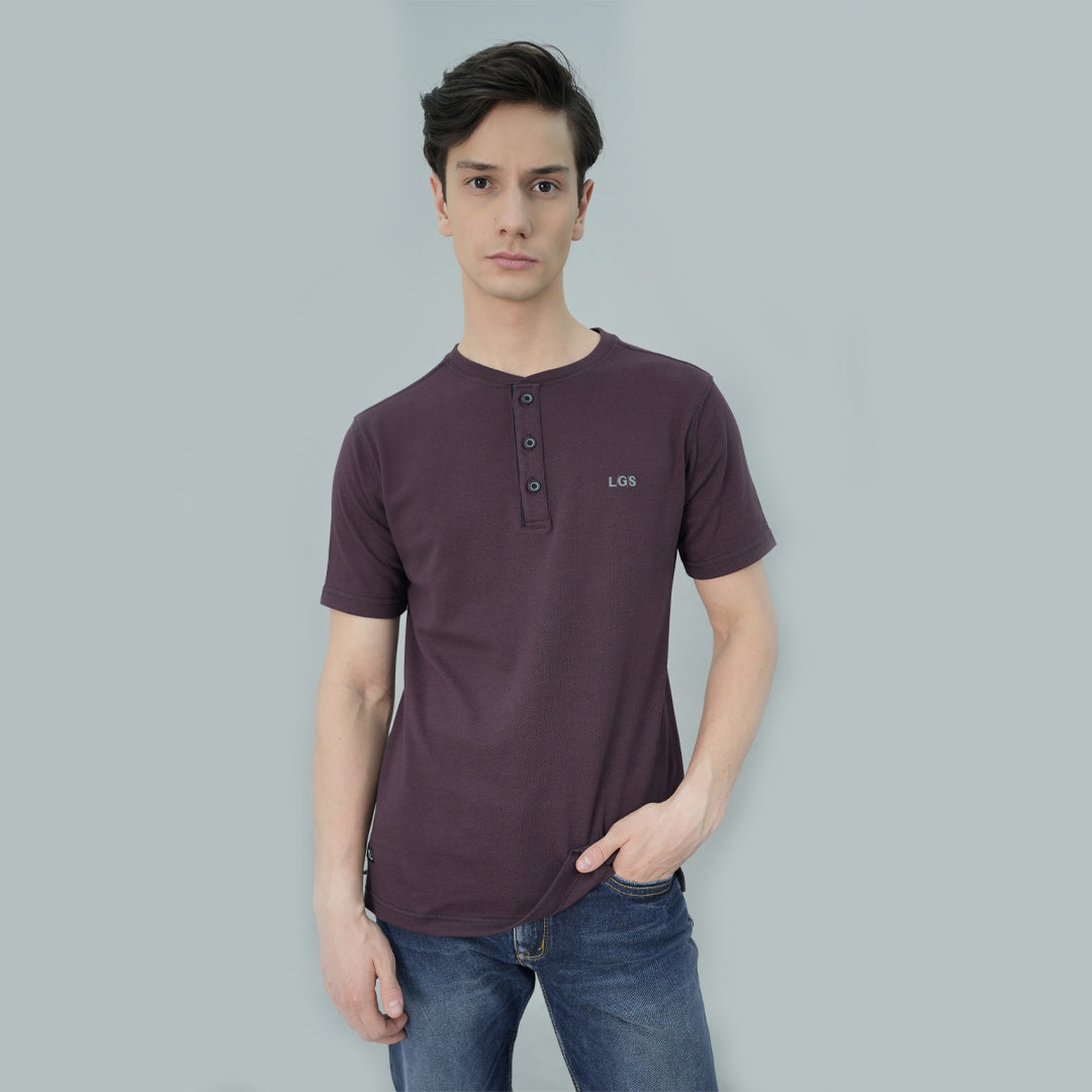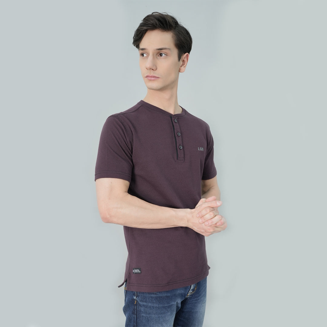Kaos Pria - Lengan Pendek - Kancing Dada - Motif Polos - Kerah Henley - Katun Premium - Bertekstur Popcorn - Merah Maroon - JPS.321.S3229F.02.C