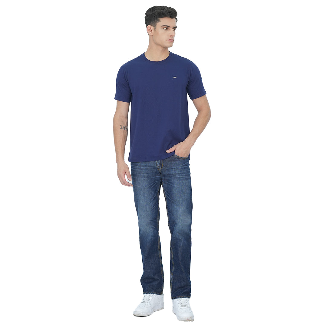 "Kaos polos lengan pendek slim fit warna navy untuk tampilan casual yang stylish dan nyaman.