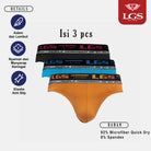 Underwear dari LGS 3 Pcs dengan warna menarik dan bahan yang nyaman Warna produk terdiri dari warna orange, biru, hitam Ref: LEMN.004.846.3.7C