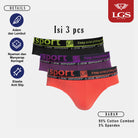 Pakaian dalam dari LGS 3 Pcs dengan pilihan warna yang menarik. Terbuat dari bahan berkualitas yang sangat nyaman dipakai. Ref : LEMN.002.877.3.7C