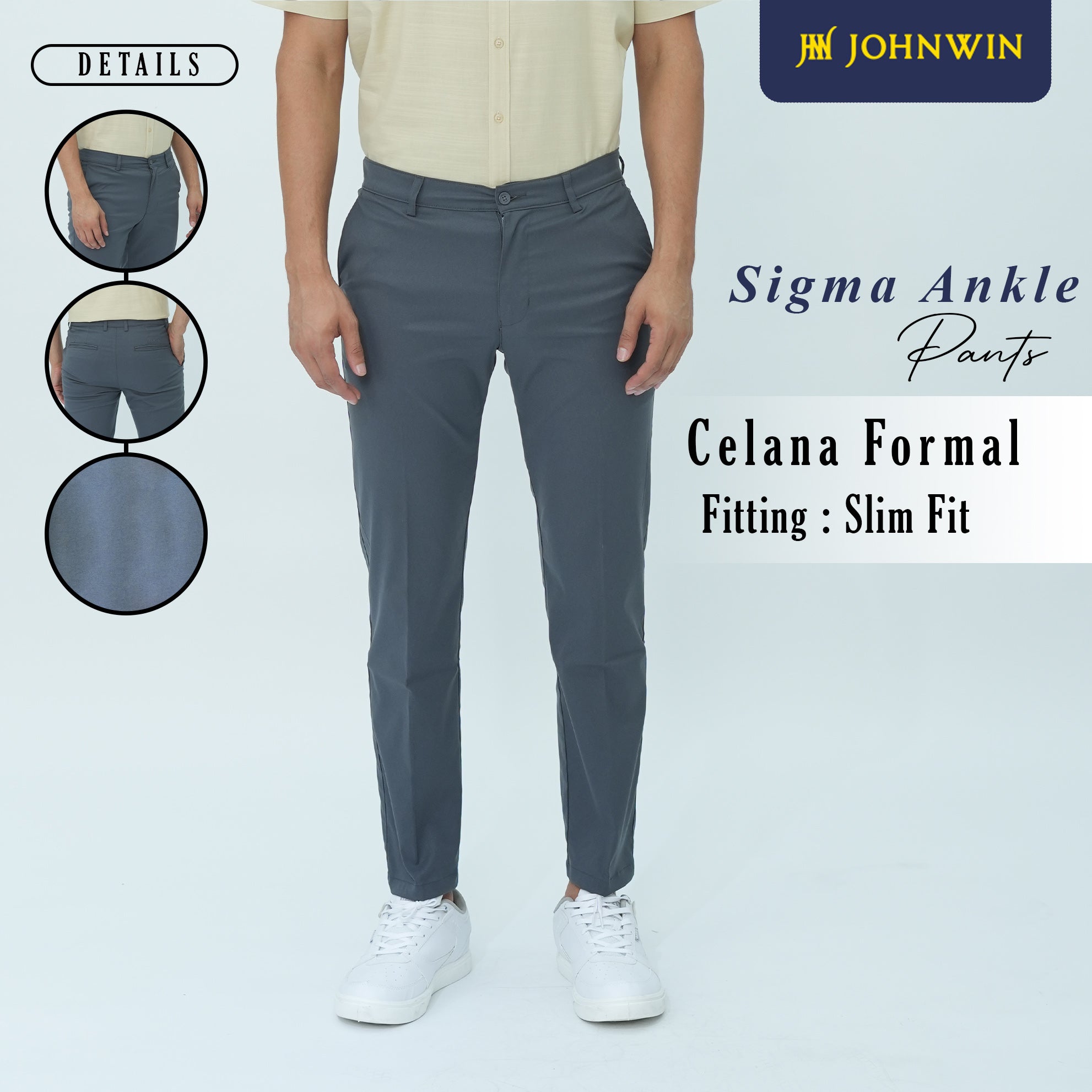 Celana Formal Sigma Ankle Pants - Celana Panjang Pria - Bahan Katun Polyester - Slim Fit - Abu - F.1024.006.151.C