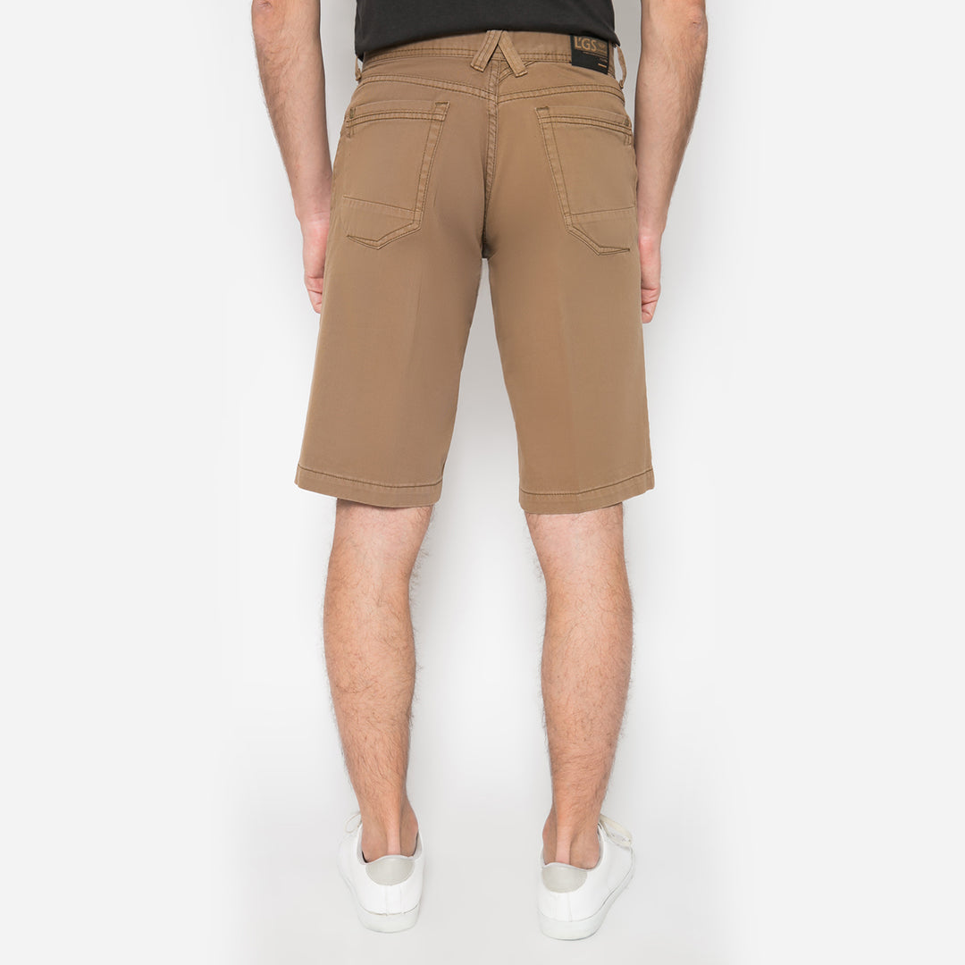 Celana Chino pendek dari LGS dengan warna dasar coklat, menampilkan motif polos. Menggunakan fitting regular fit. Terbuat dari bahan katun berkualitas.