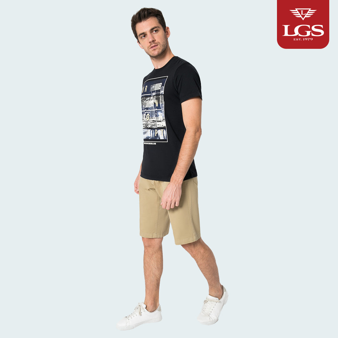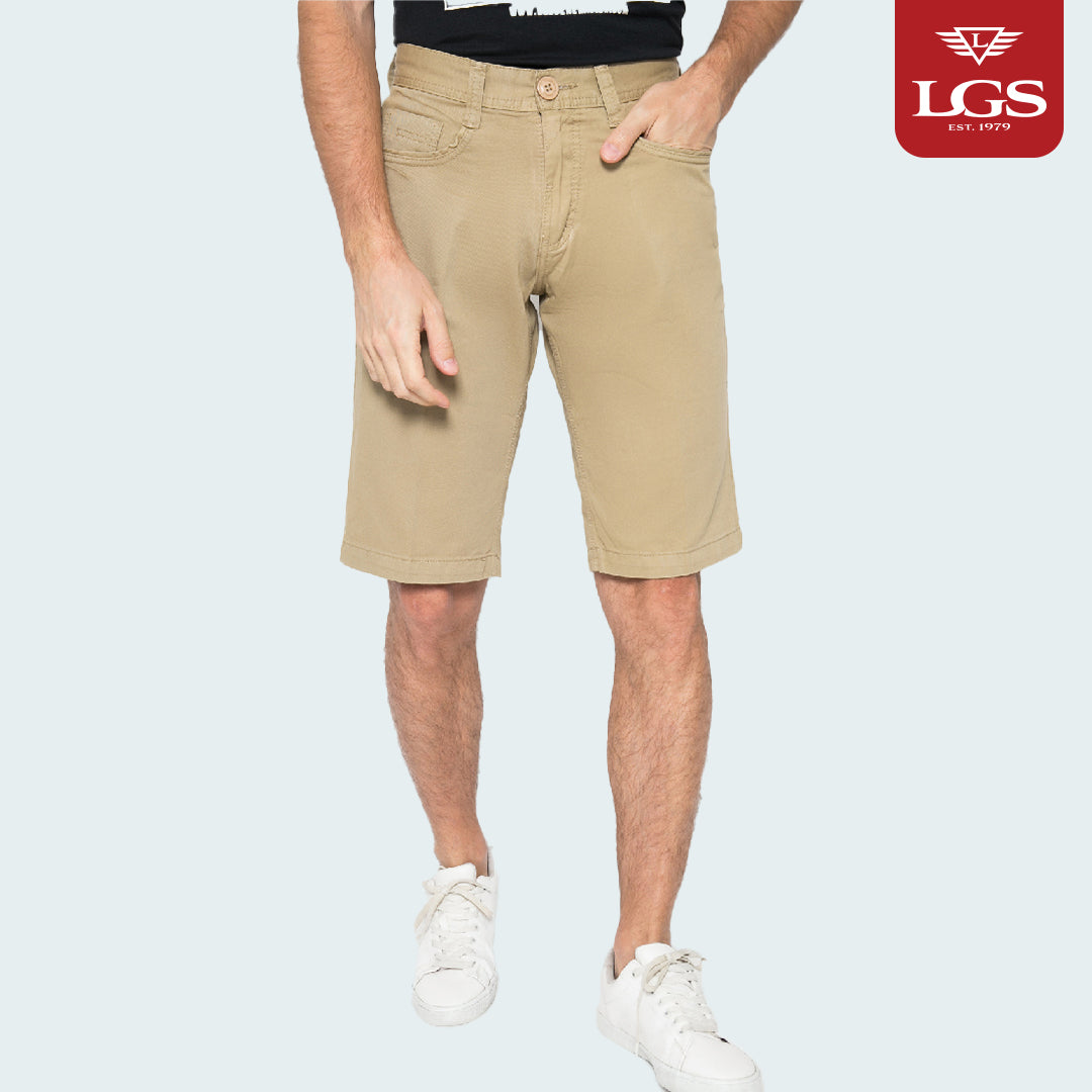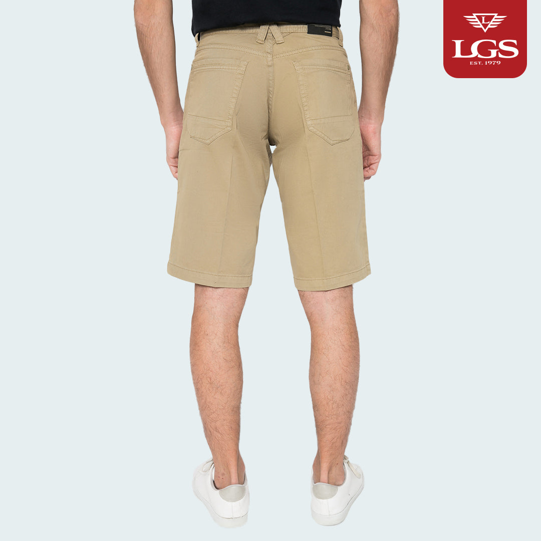 Celana Chino pendek dari LGS dengan warna dasar krem, menampilkan motif polos. Menggunakan fitting regular fit. Terbuat dari bahan katun berkualitas.