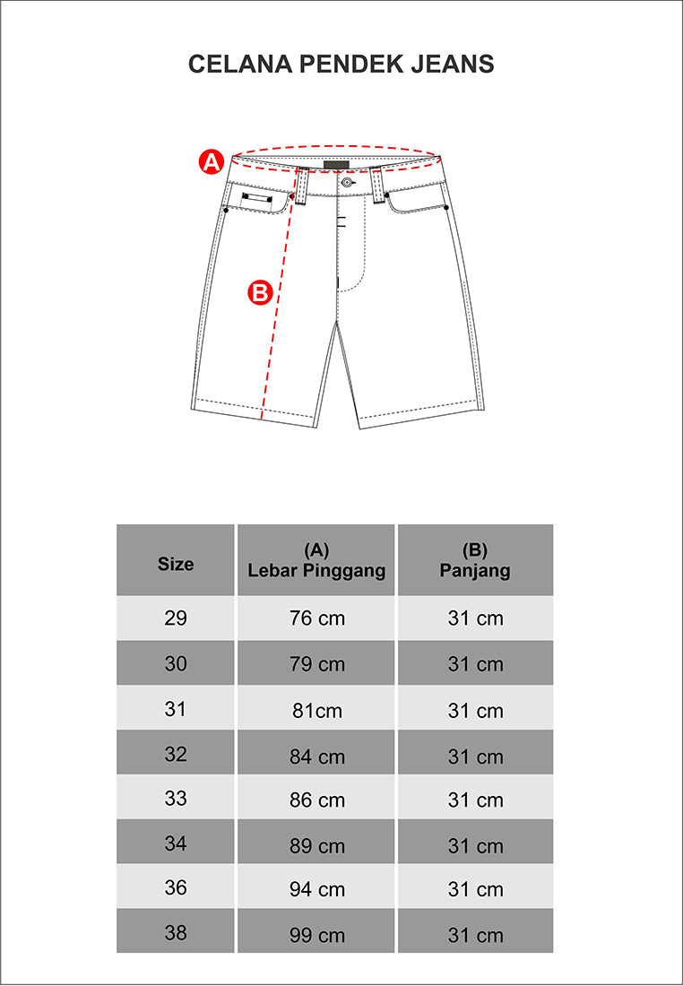 - Lingkar Pinggang x Panjang Inseam - 31 (81cm x 31cm)