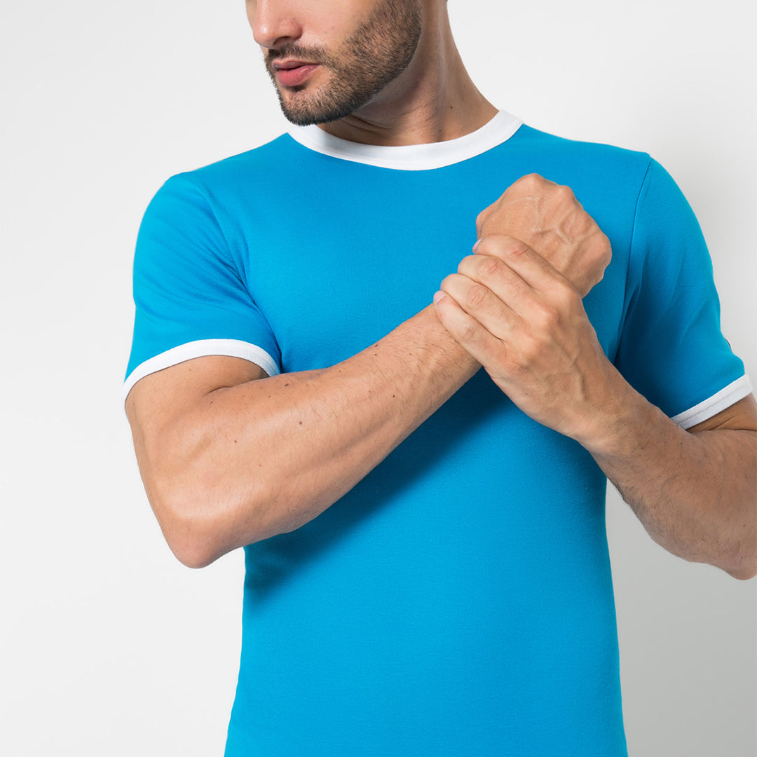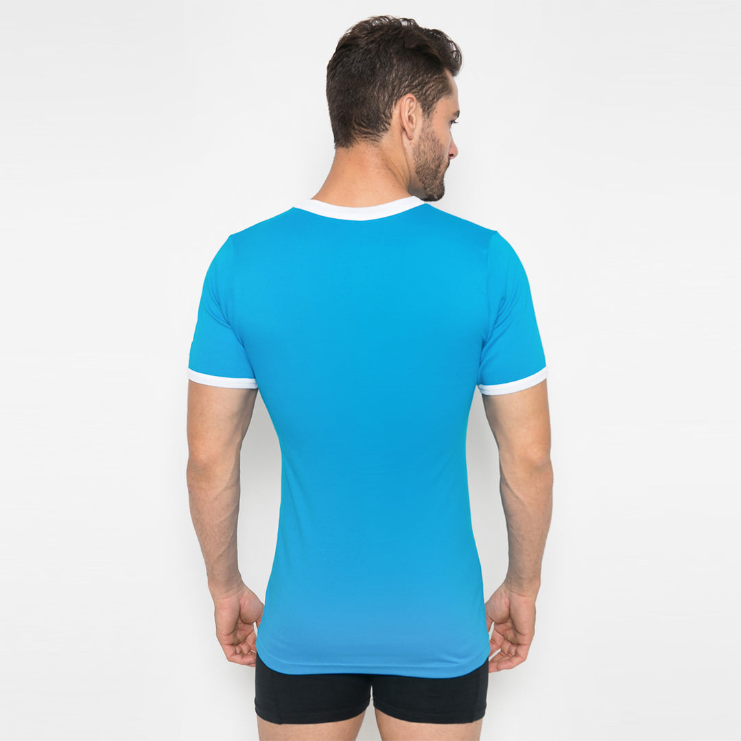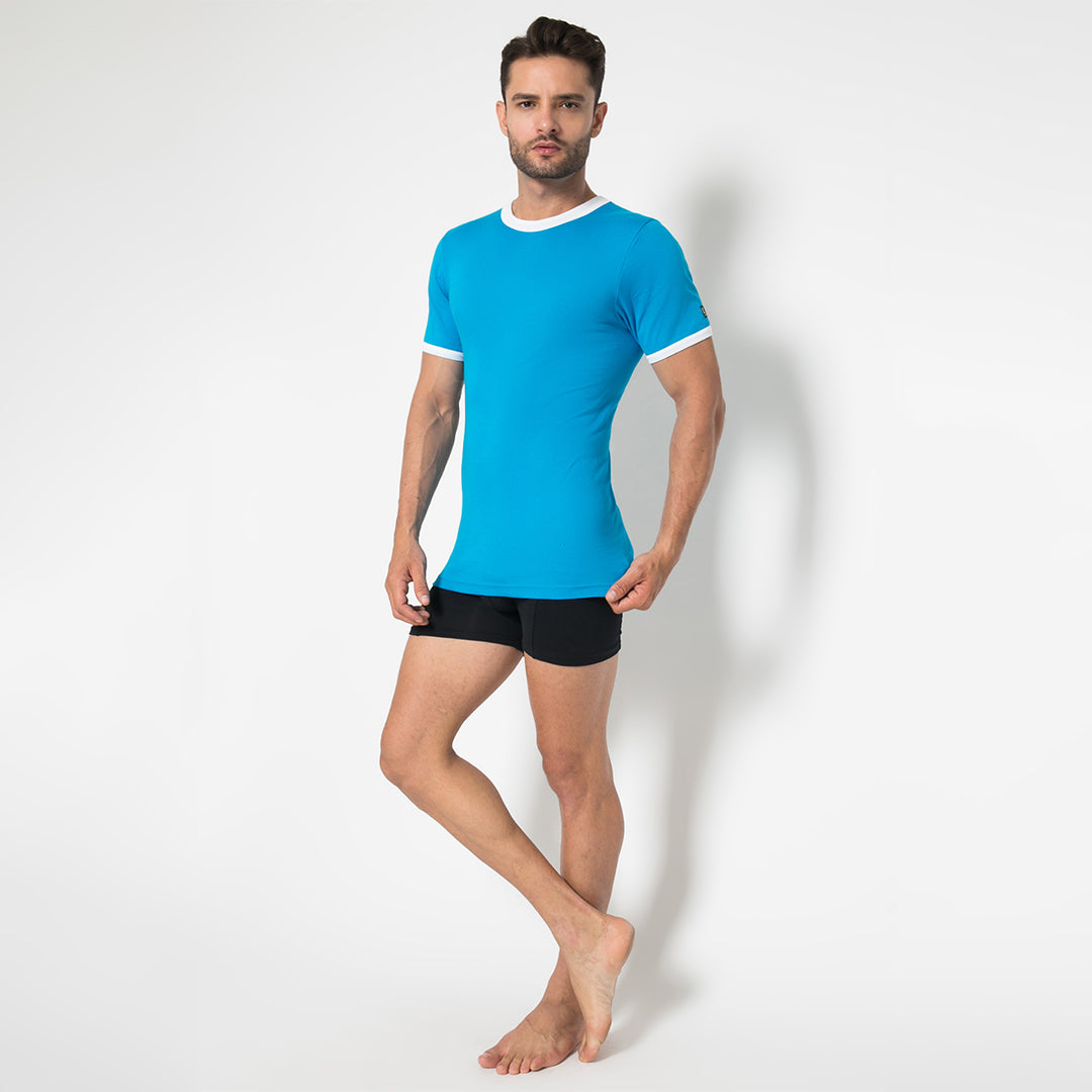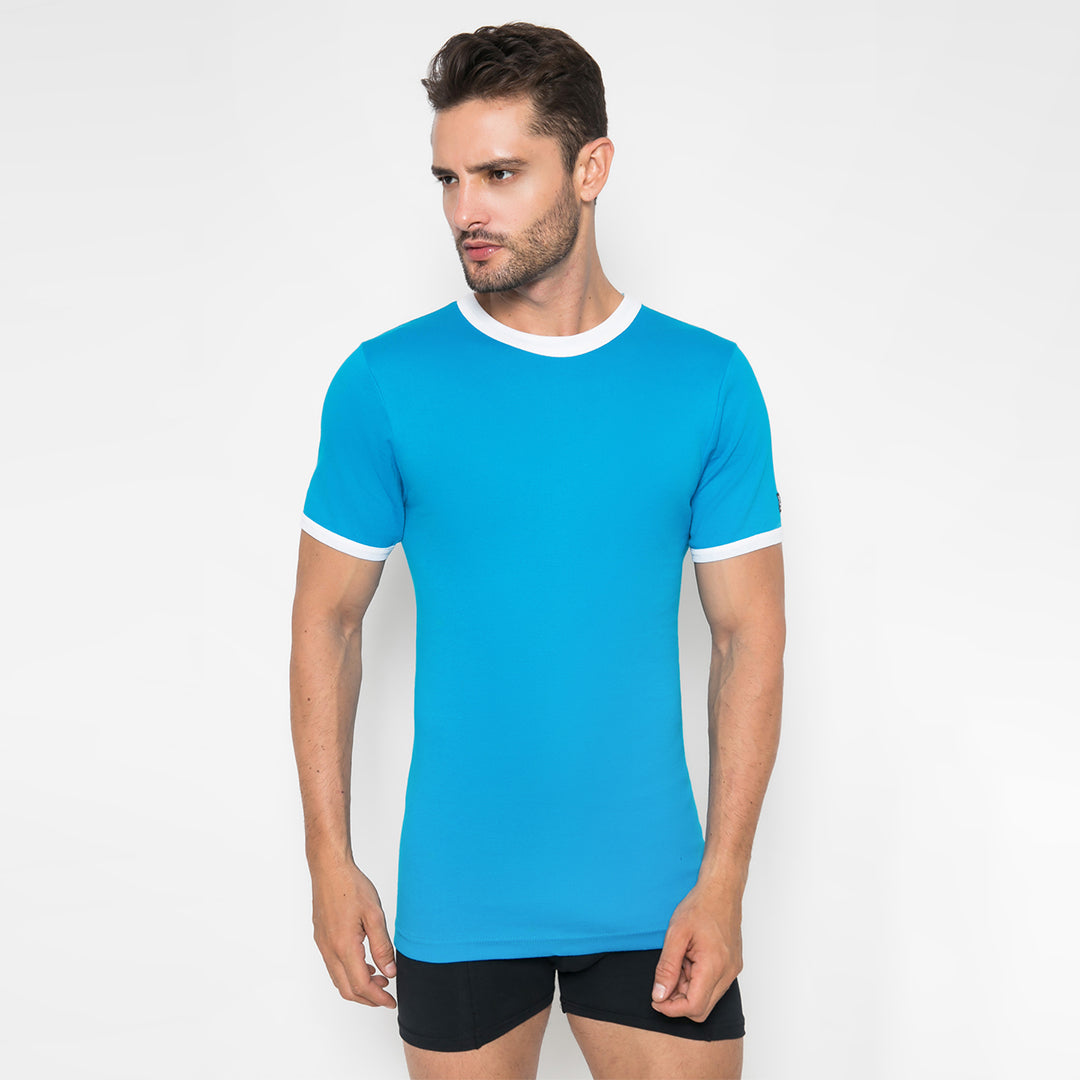 Pakaian dalam pria, Kaos Oblong dari LGS berbahan dasar biru polos dengan dipadukan dengan nuansa warna putih dibagian leher dan juga bagian tangan .Berbahan dasar katun berkualitas dan nyaman dipakai, cocok untuk dipakai sehari-hari.