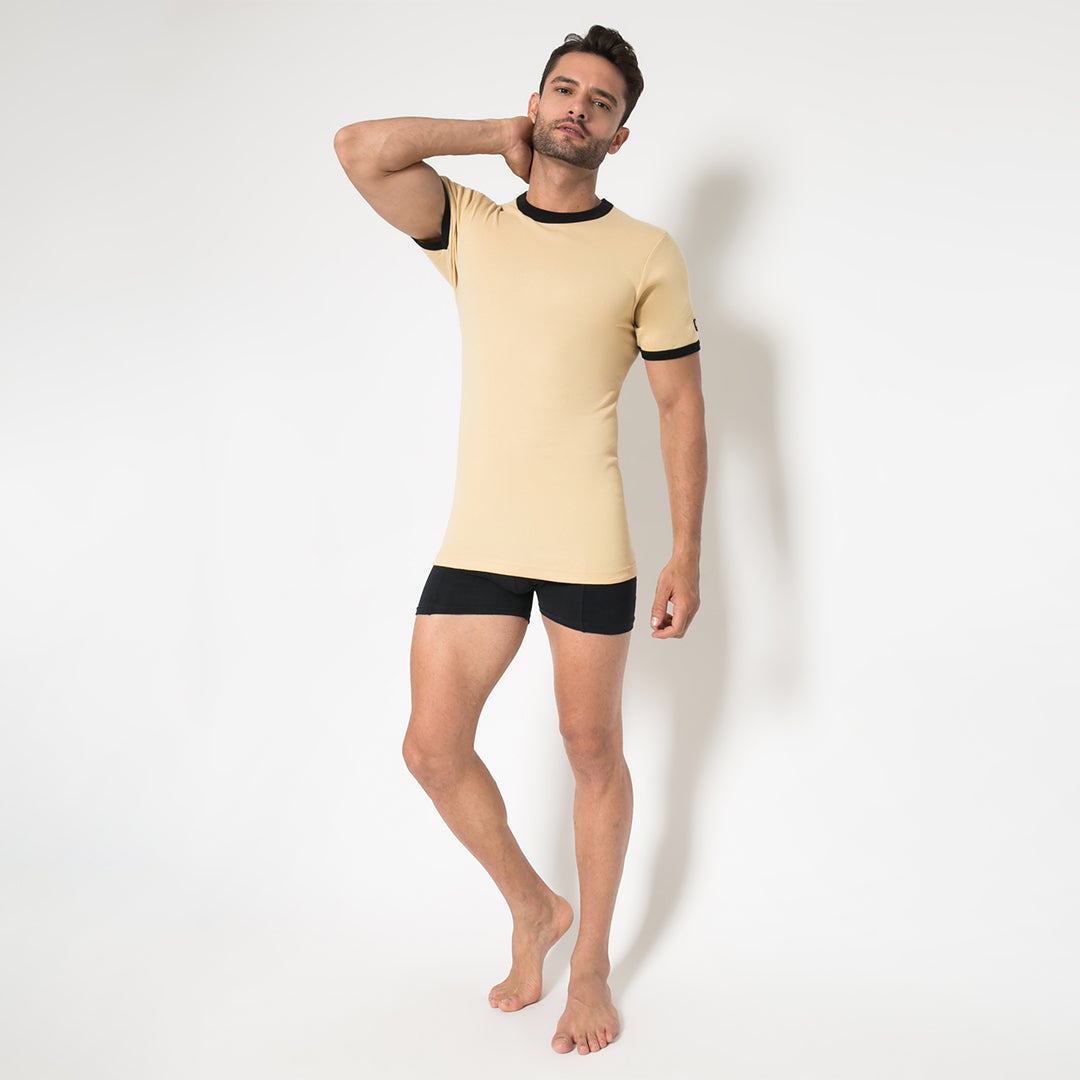Pakaian dalam Pria Kaos Dalaman polos dengan warna dasar coklat dipadukan dengan nuansa warna hitam dibagian leher dan bagian lengan . Bahan dasar katun berkualitas dan nyaman dipakai , cocok untuk dipakai sehari - hari. Ref : LETS.003.333.C&H.7C