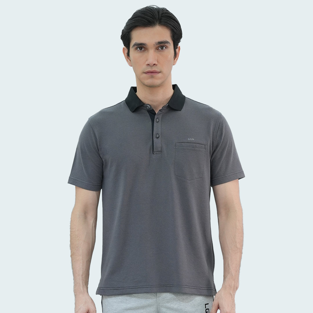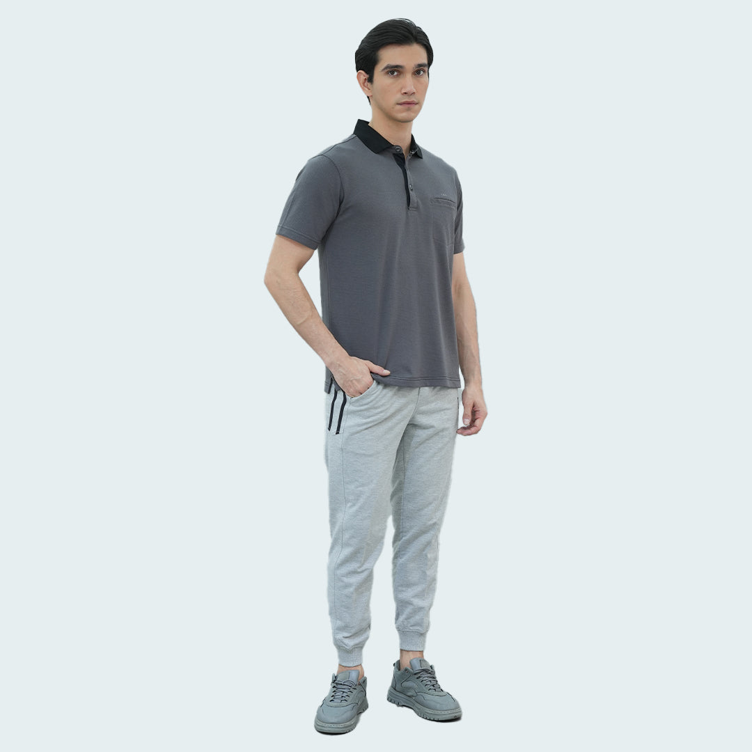 Kaos Polo Casual Pria - Katun Premium - Shirt Lengan Pendek - Motif Polos Basic - Bertekstur Popcorn - Abu Muda - CWS.225.U3398.02.C
