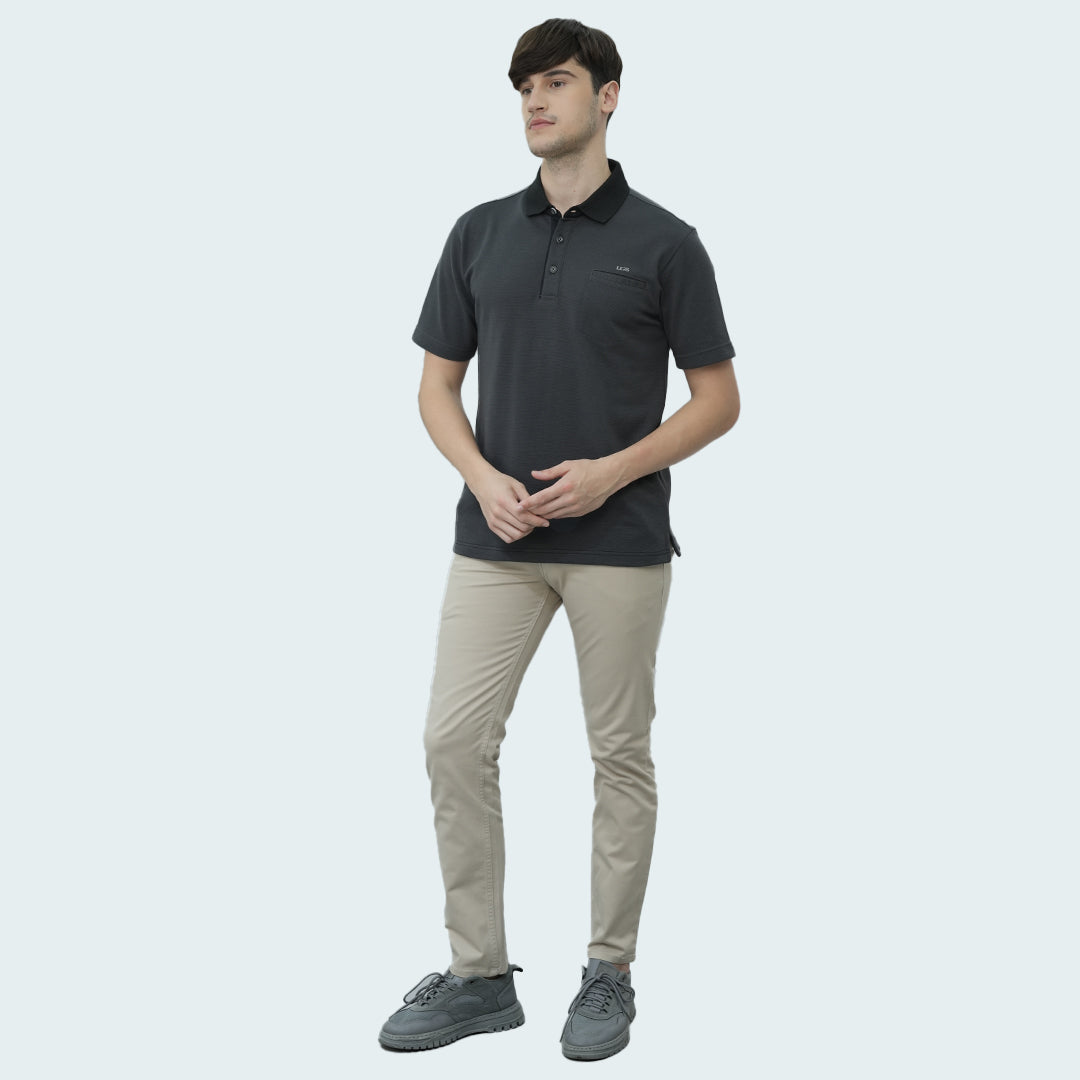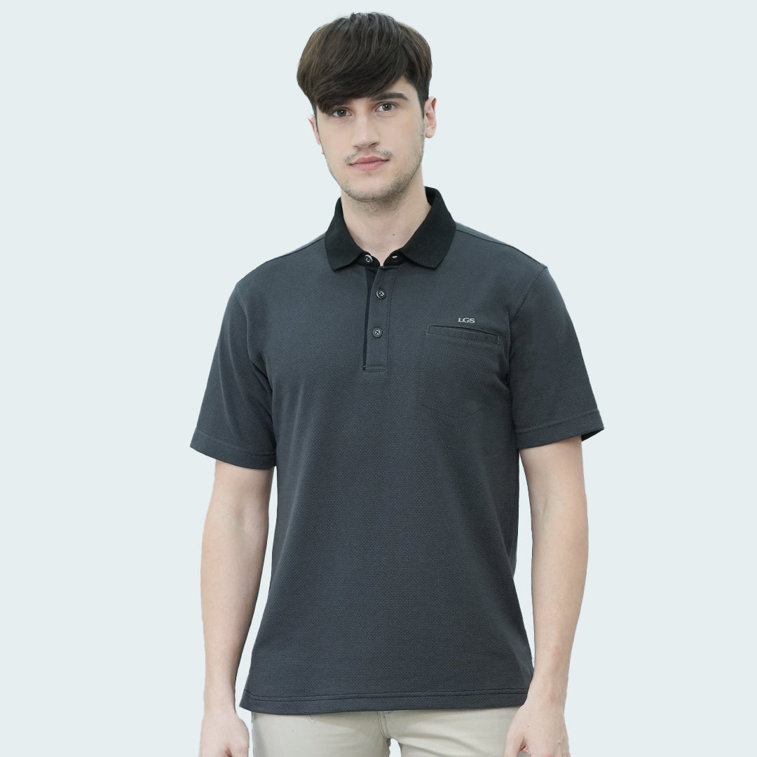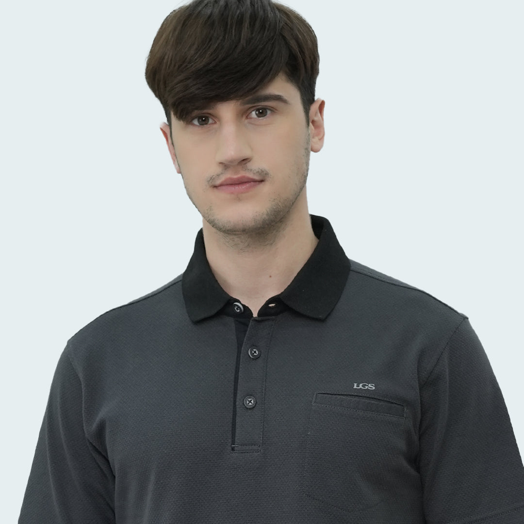 Kaos Polo Casual Pria - Katun Premium - Shirt Lengan Pendek - Motif Polos Basic - Bertekstur Popcorn - Abu Tua - CWS.225.U3398.01.C