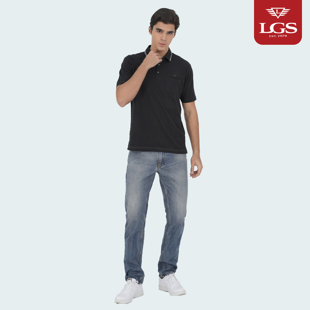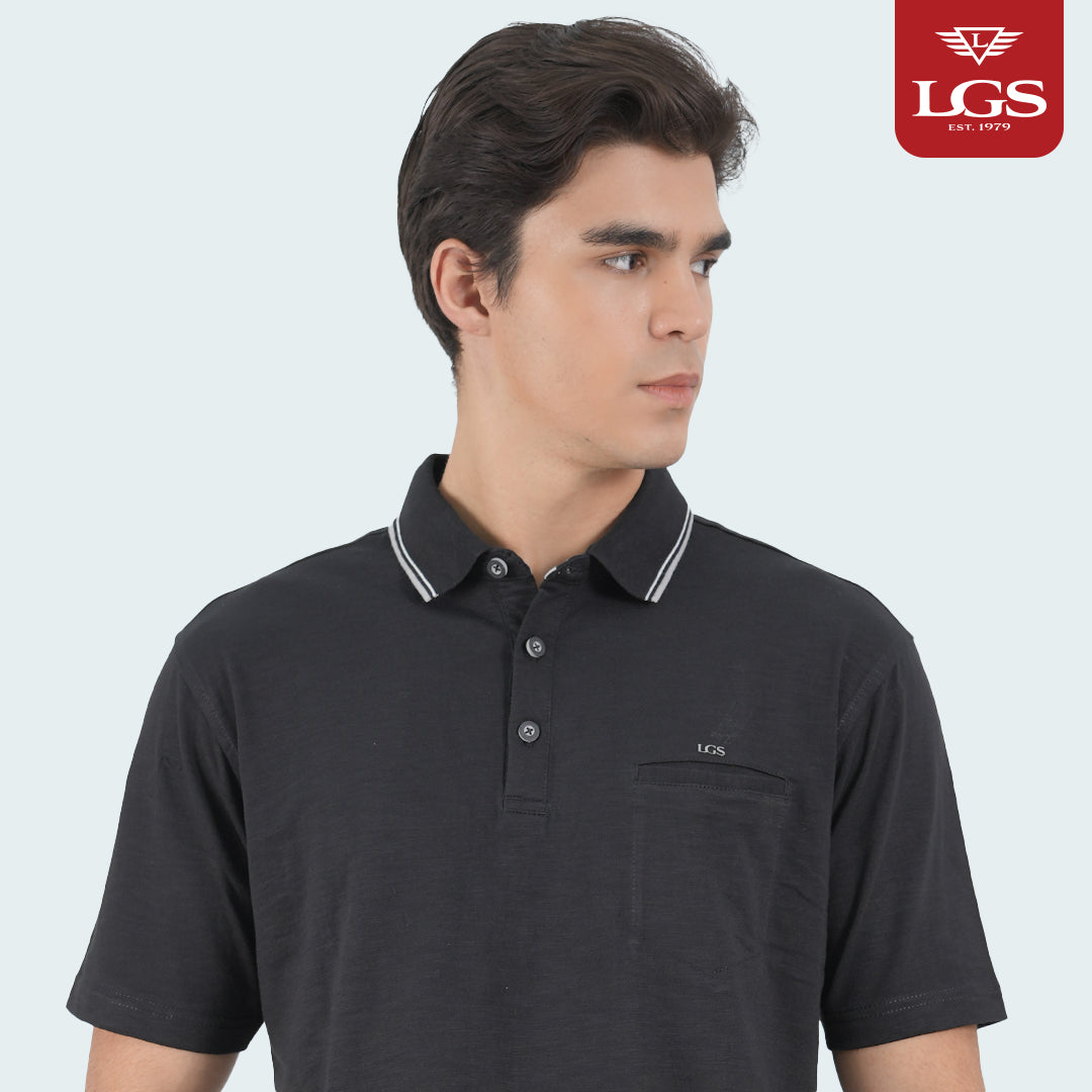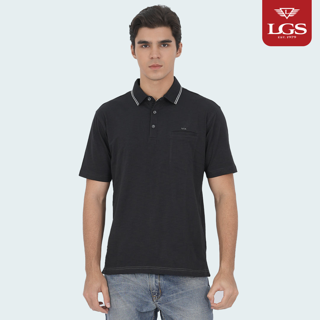 Kaos Polo - Piove Collection - Hitam - Single Pocket - Regular Fit - Kerah Stripe - CWS.225.J3470.33.C