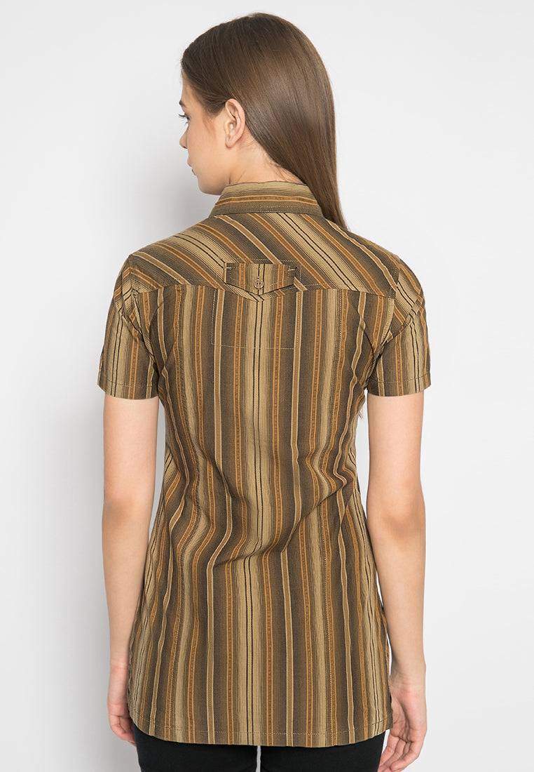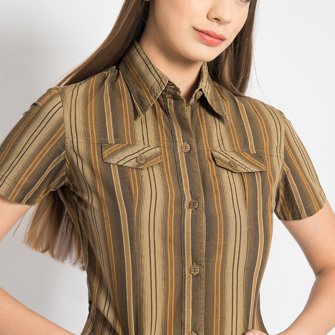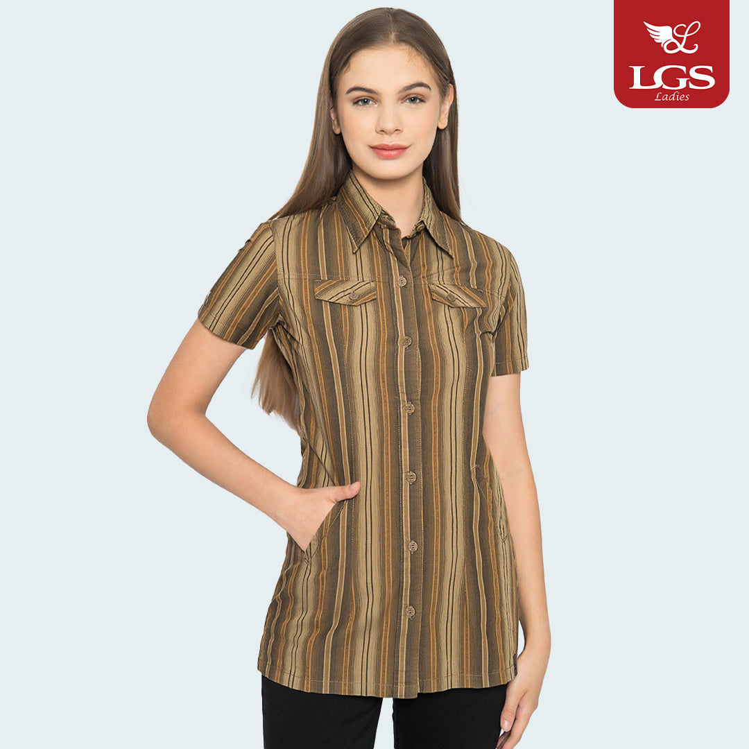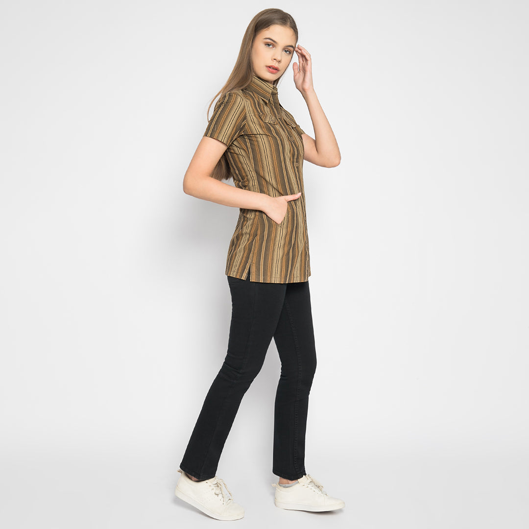 Kemeja Casual Wanita - Lengan Pendek - Salur - Cokalt - LLSH.380.FM616.499.7C