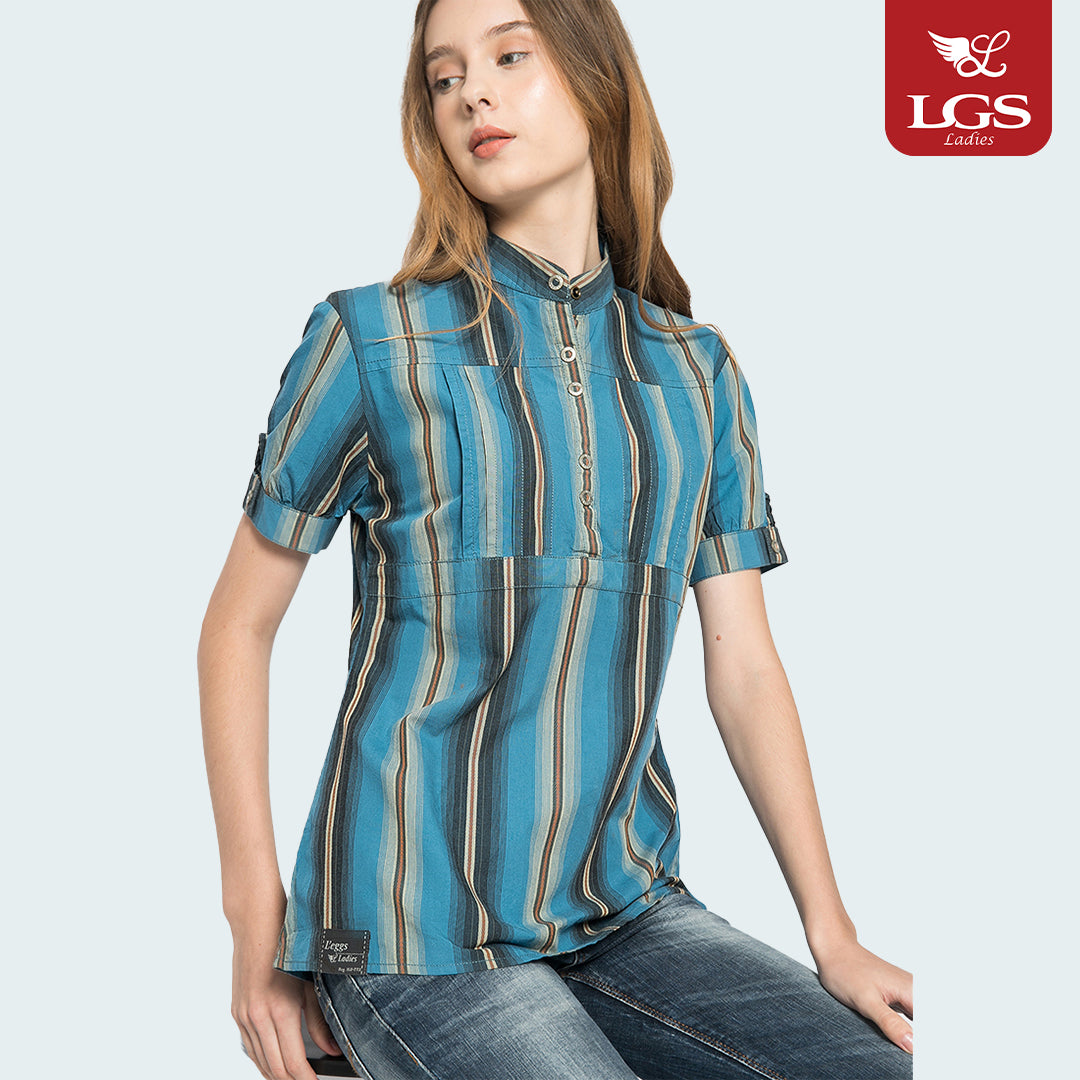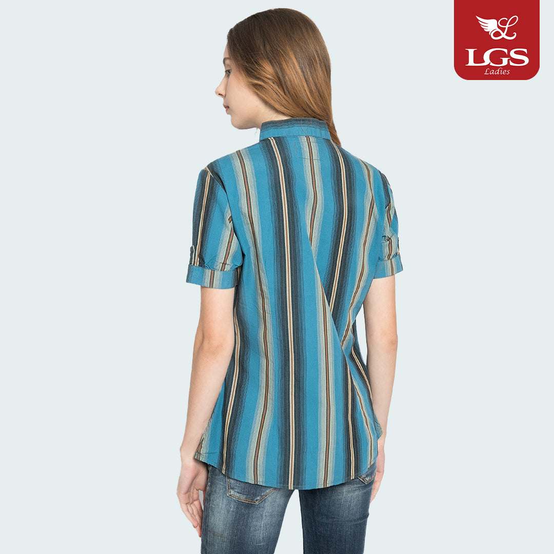 Kemeja Casual Wanita - Lengan Pendek - Salur - Hijau Tosca - LLSH.380.WD656.464.7C