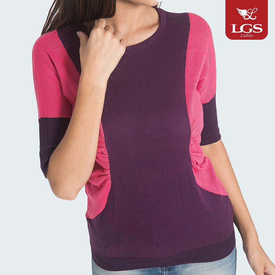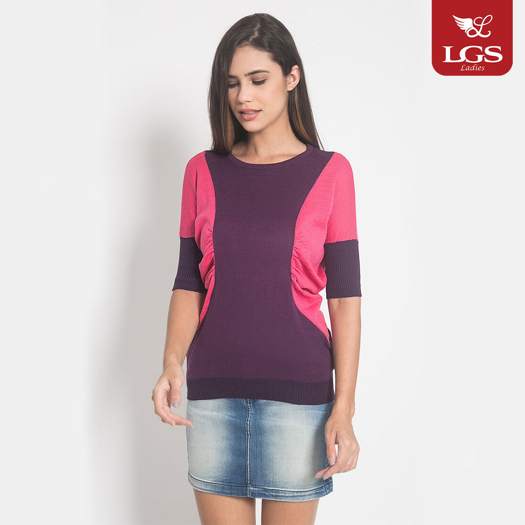 Sweater Wanita dari LGS dengan warna dasar ungu. Menampilkan model kombinasi warna pink ungu dan model kerutan dibagian depan. Terbuat dari bahan rajut berkualitas. Menggunakan fitting Slim Fit. Ref: LST.360.U677.076.C