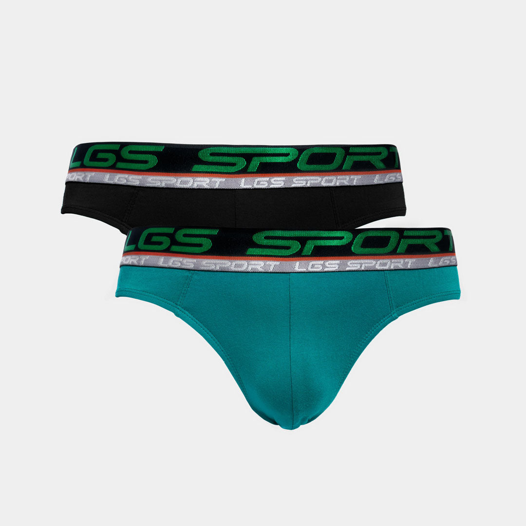 Pakaian dalam dari LGS 2 Pcs dengan warna hijau dan hitam divariasi dengan logo pada bagian karet, serta bahan yang nyaman. Ref : LEMN.004.824.2.SP