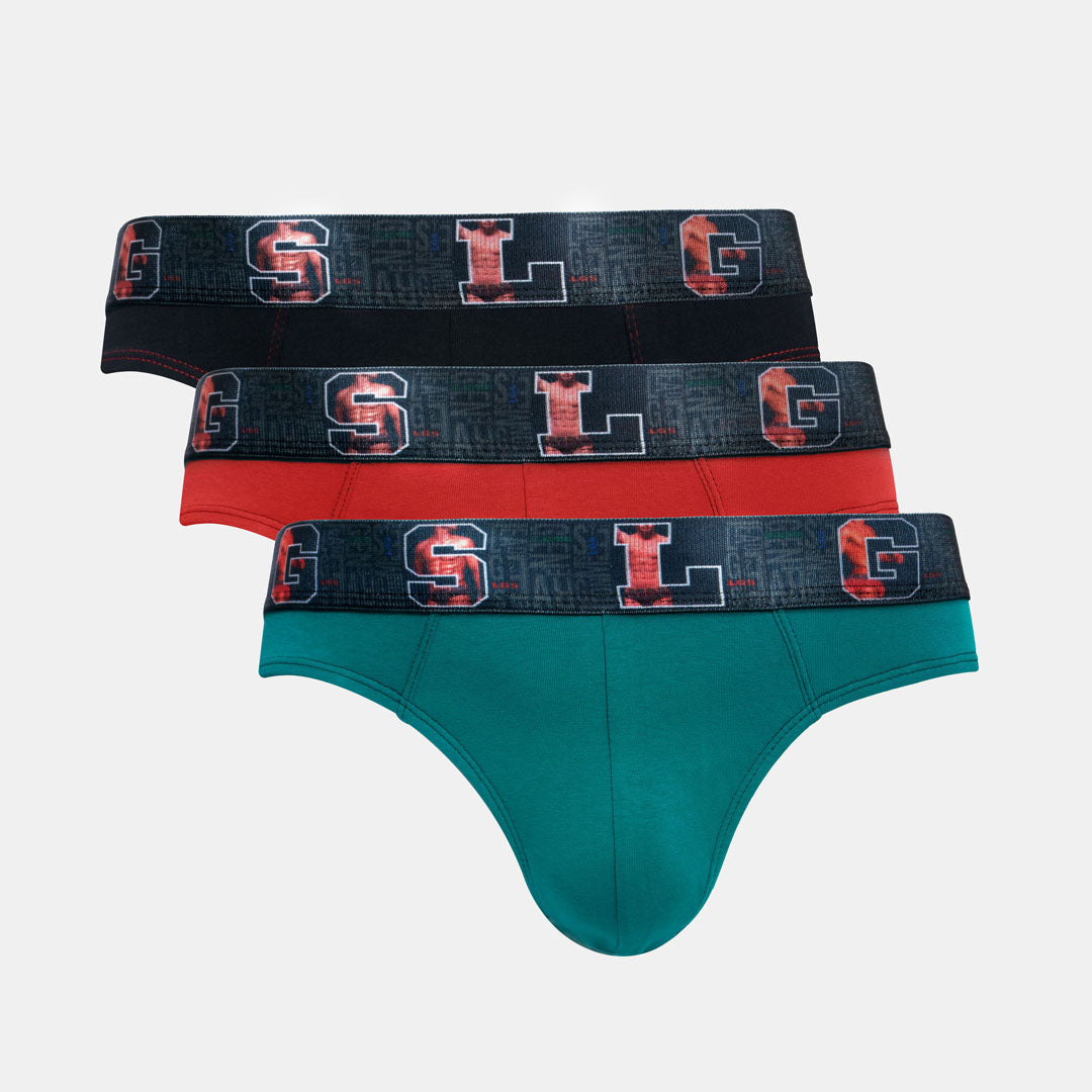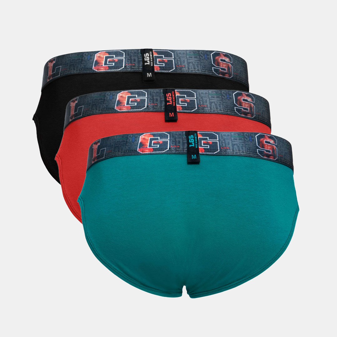 3 Pcs Underwear dari LGS dengan variasi warna merah, hitam, dan hijau. Memiliki bahan yang sangat nyaman. Cocok untuk menemani penampilan Anda sehari - hari.