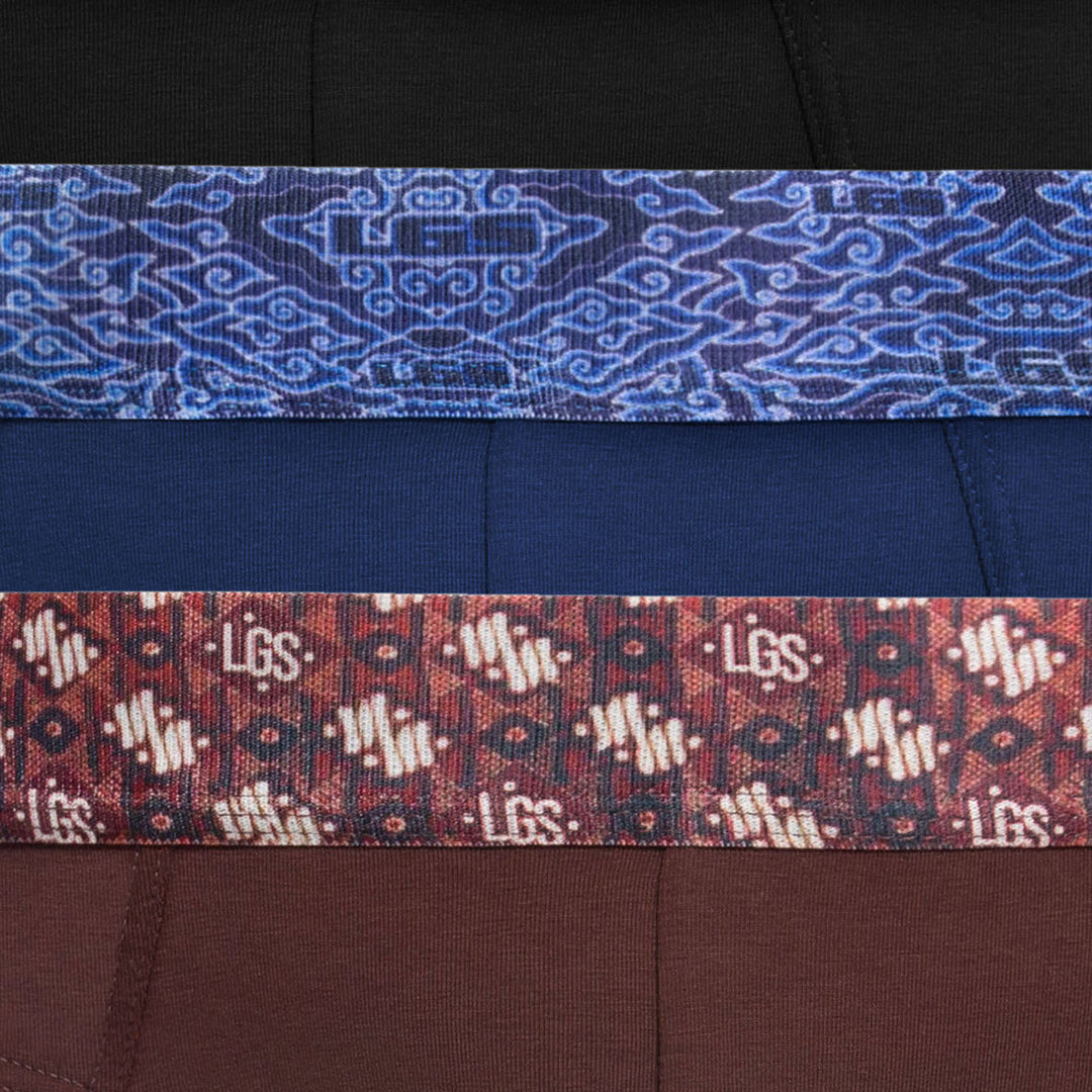 Underwear dari LGS dengan paket 3 warna yang sangat menarik. Menampilkan model brief dengan motif batik pada bagian karet. Terbuat dari bahan katun berkualitas yang sangat nyaman dipakai. Ref : LEMN.002.838.3.7C