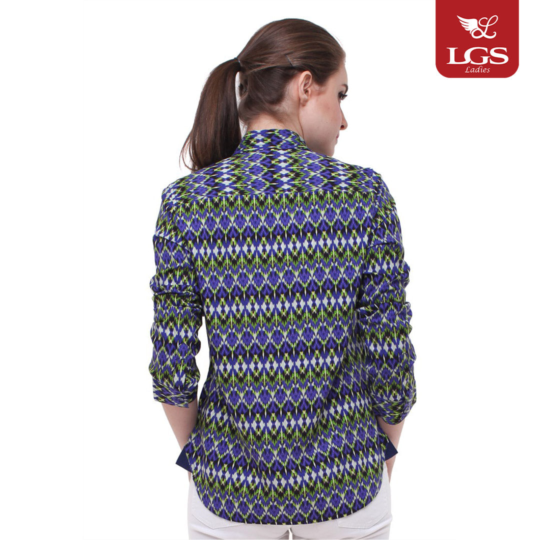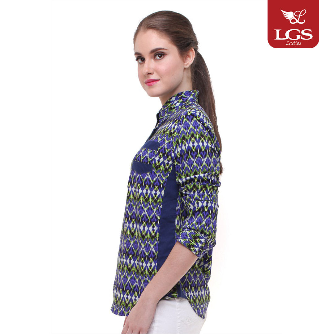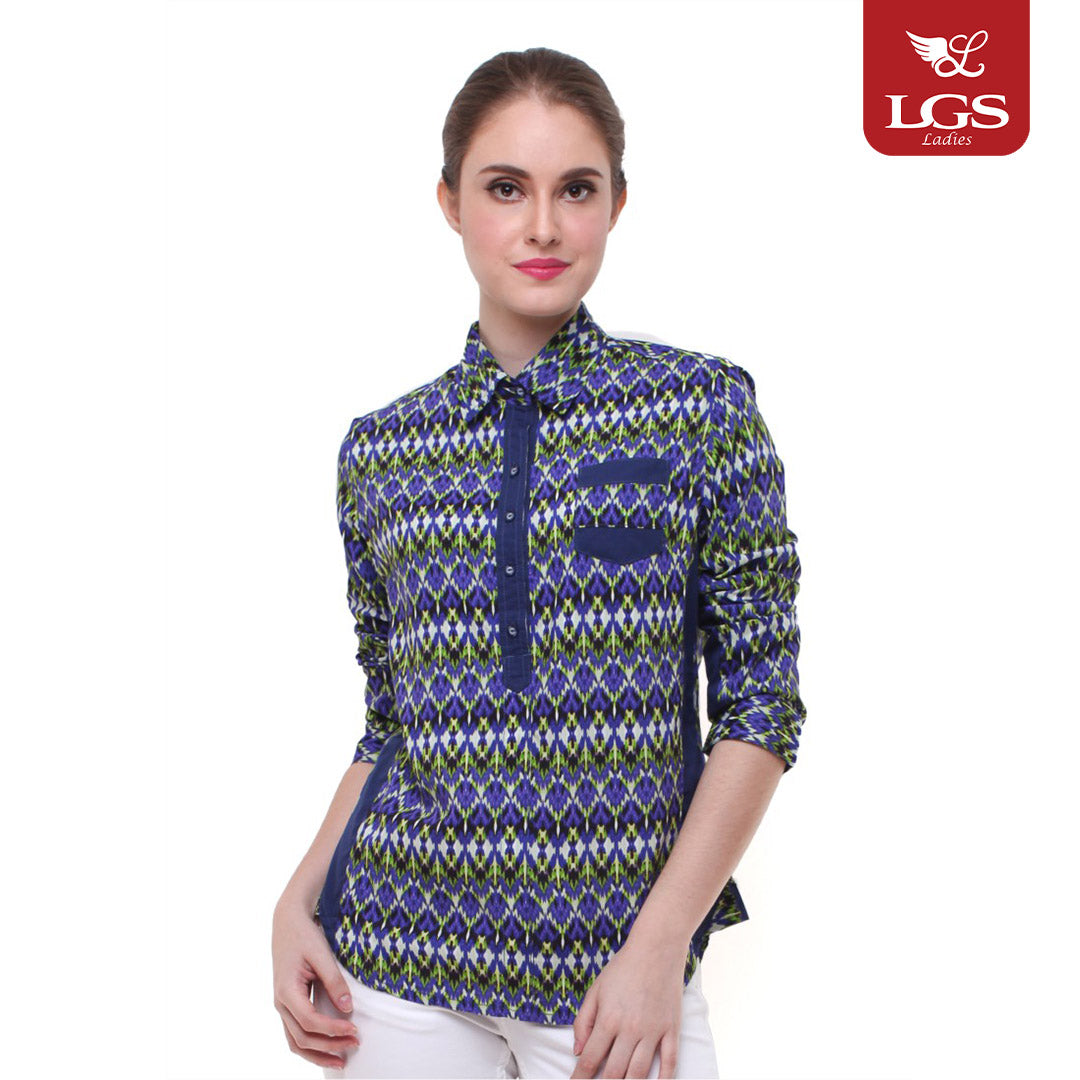Kemeja wanita dari LGS dengan lengan panjang. Menampilkan motif batik berwarna biru dengan sebuah kantong pada bagian dada. Model baju menggunakan 5 buah kancing pada bagian atas. Terbuat dari bahan katun berkualitas yang sangat nyaman dipakai. Ref : LSH.381.O1286L.529.C L/S